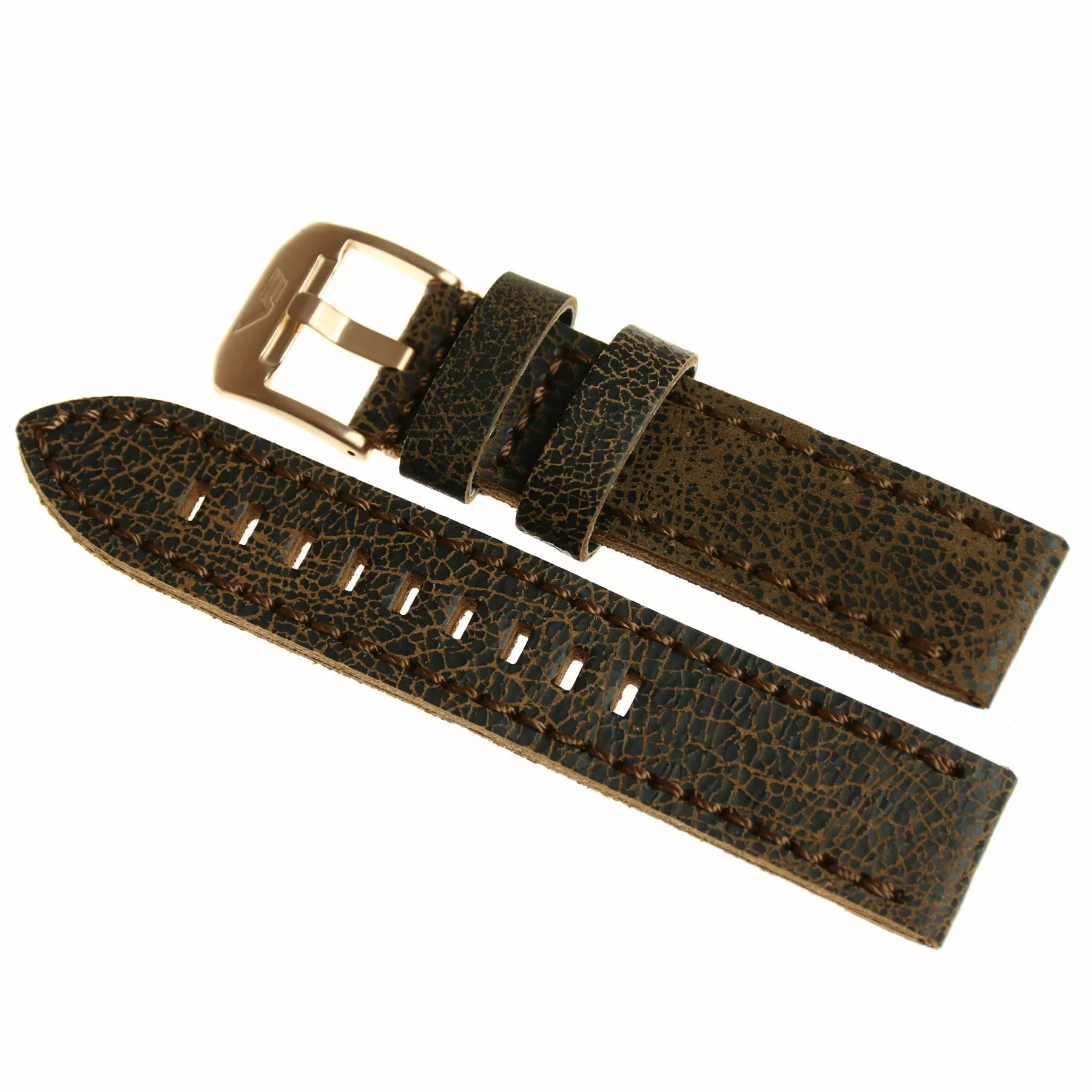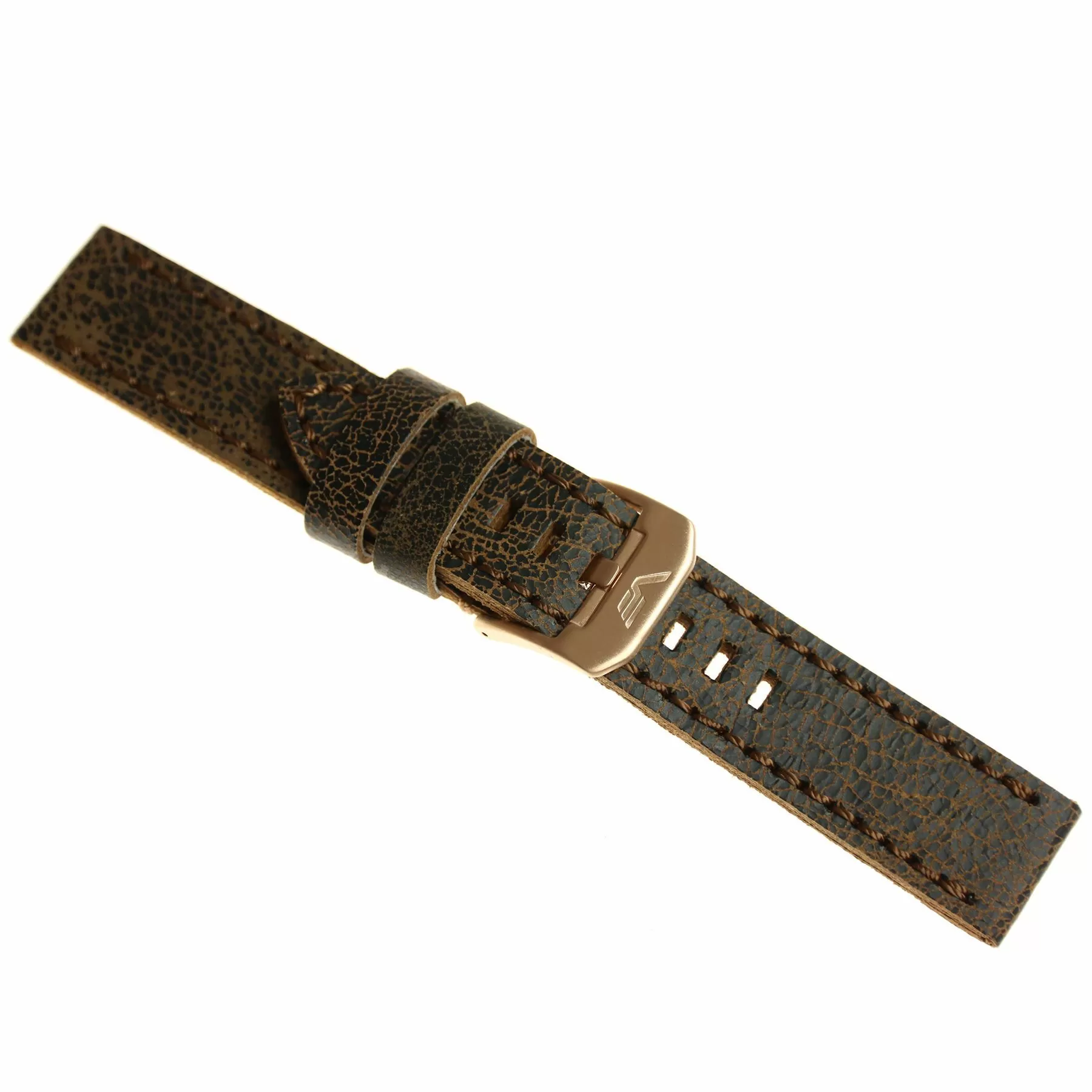 Pasek Vostok Europe Almaz skórzany brązowy o bardzo ciekawej strukturze z klamrą w kolorze złotym w odcieniu różowym