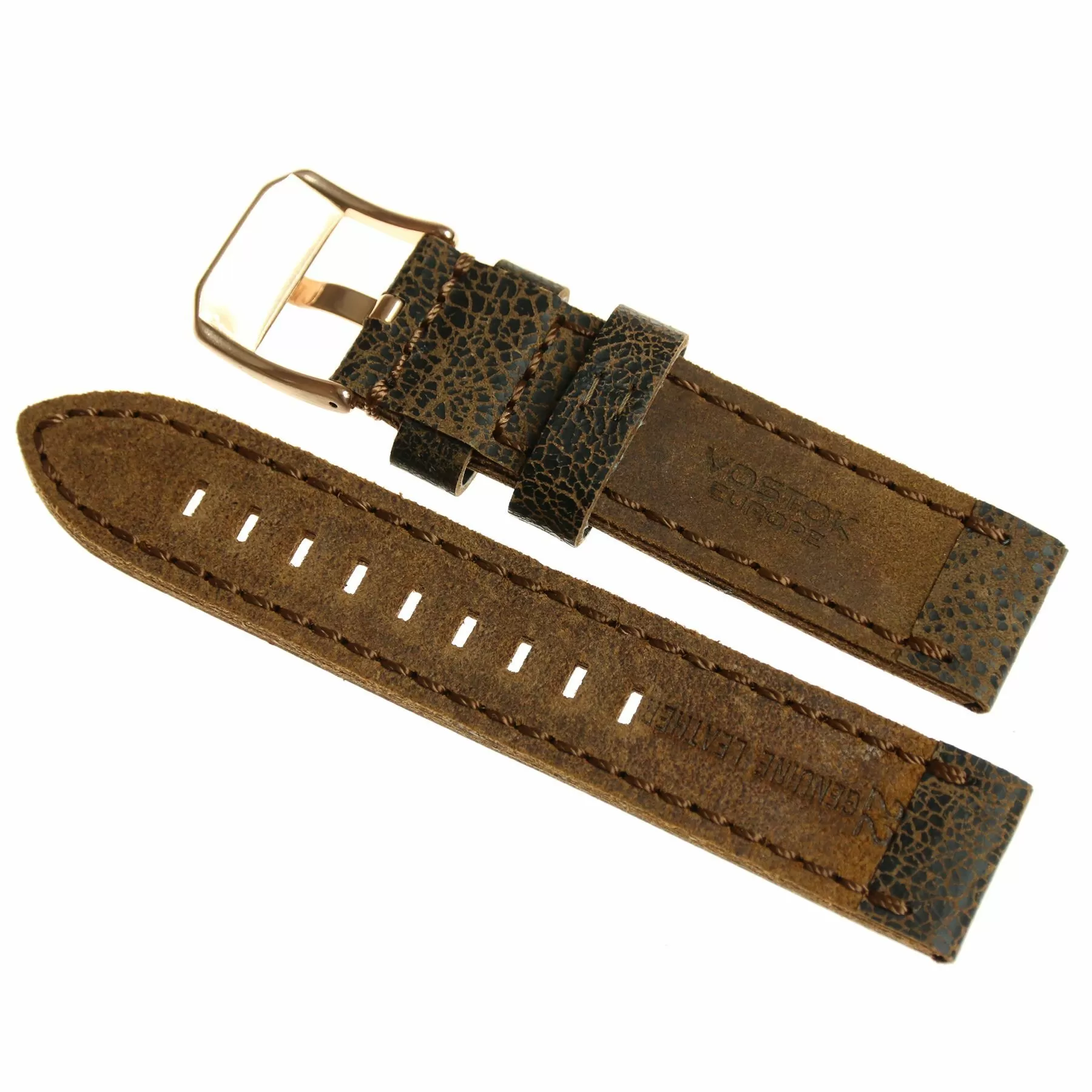 Pasek do zegarka Vostok Europe Pasek Almaz - Skóra (O507) brązowy klamra różowe złoto