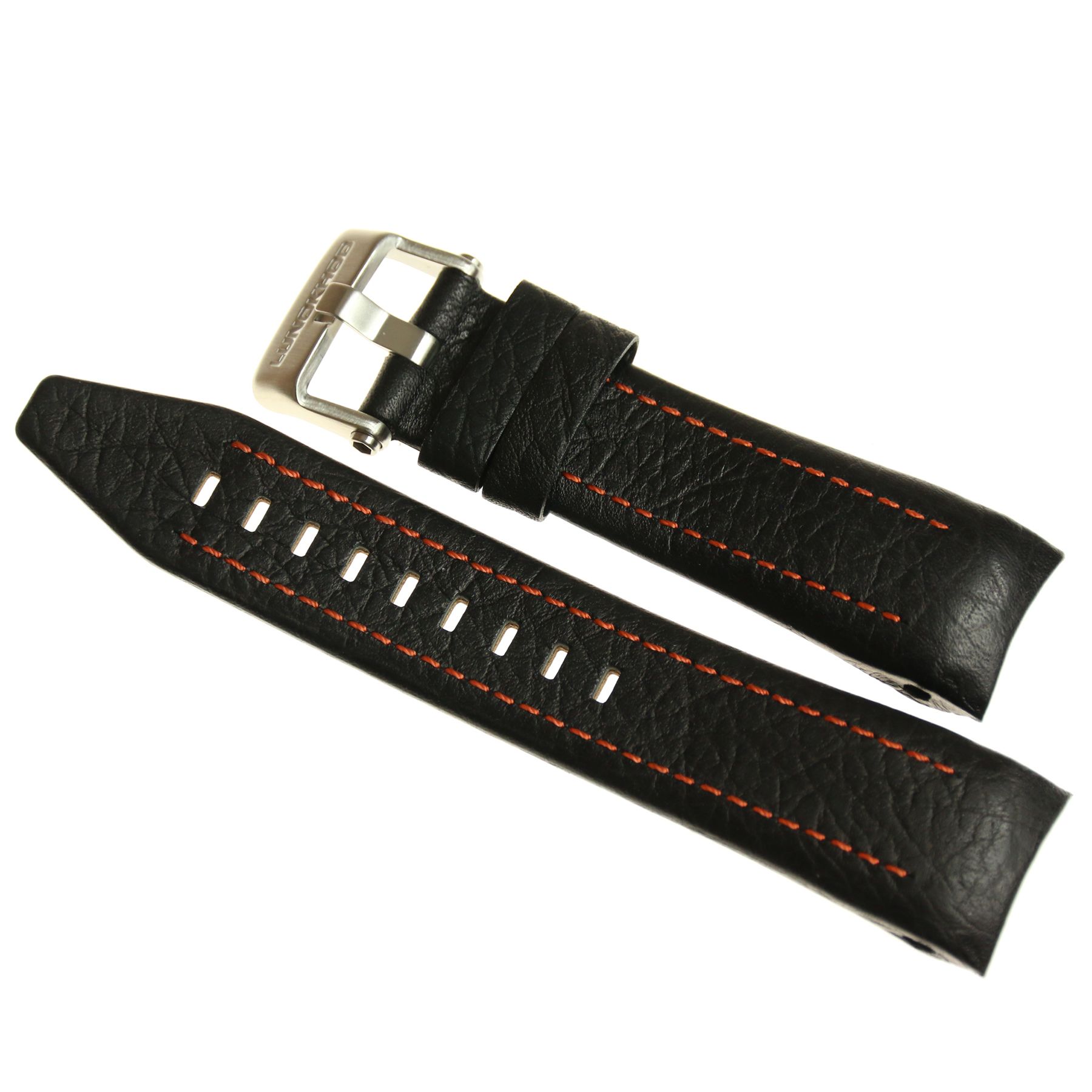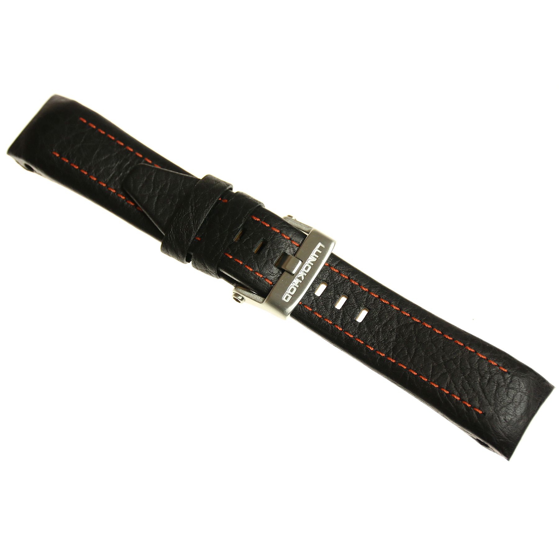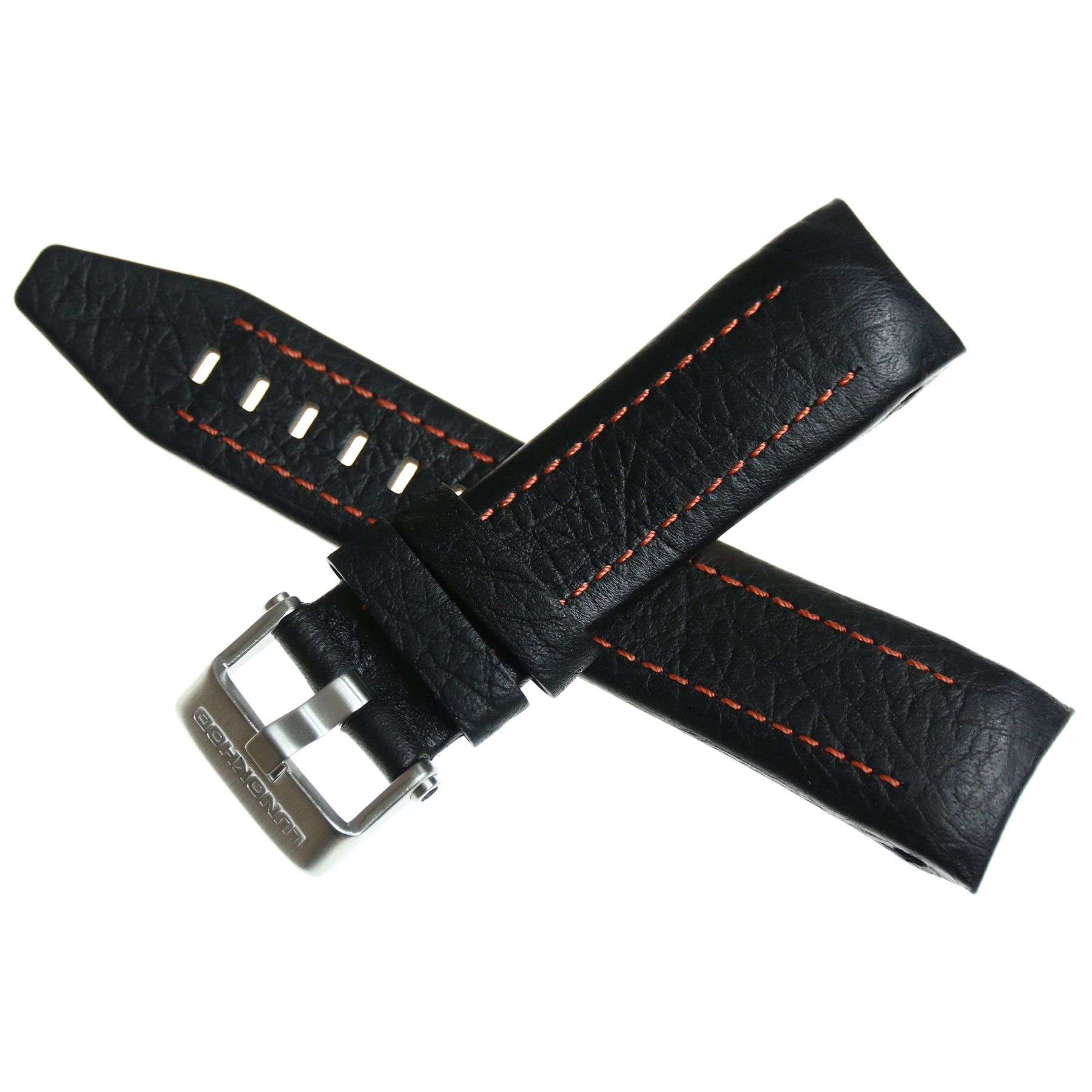 Pasek do zegarka Vostok Europe Pasek Lunokhod - Skóra (A506) czarny z pomarańczowym przeszyciem matowa klamra