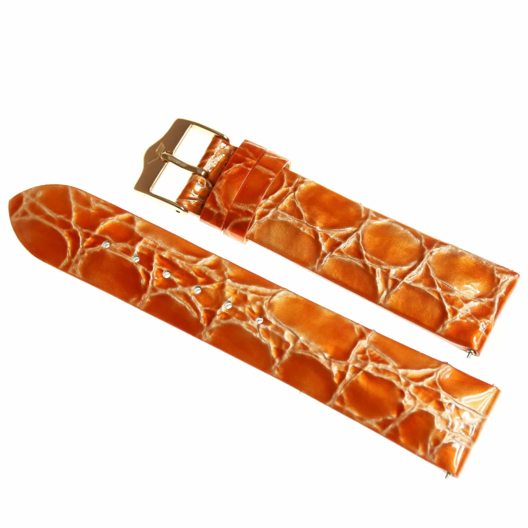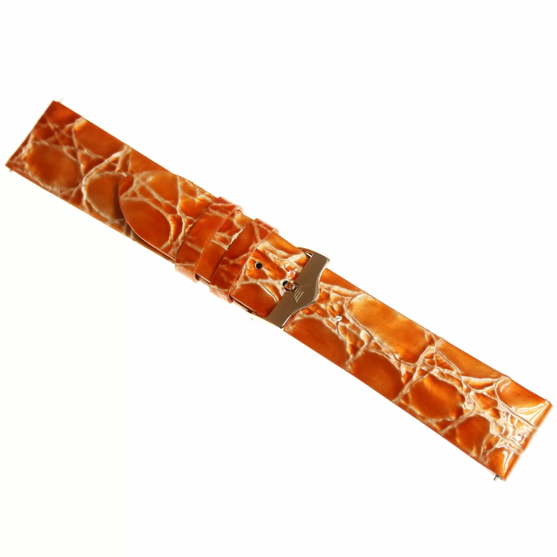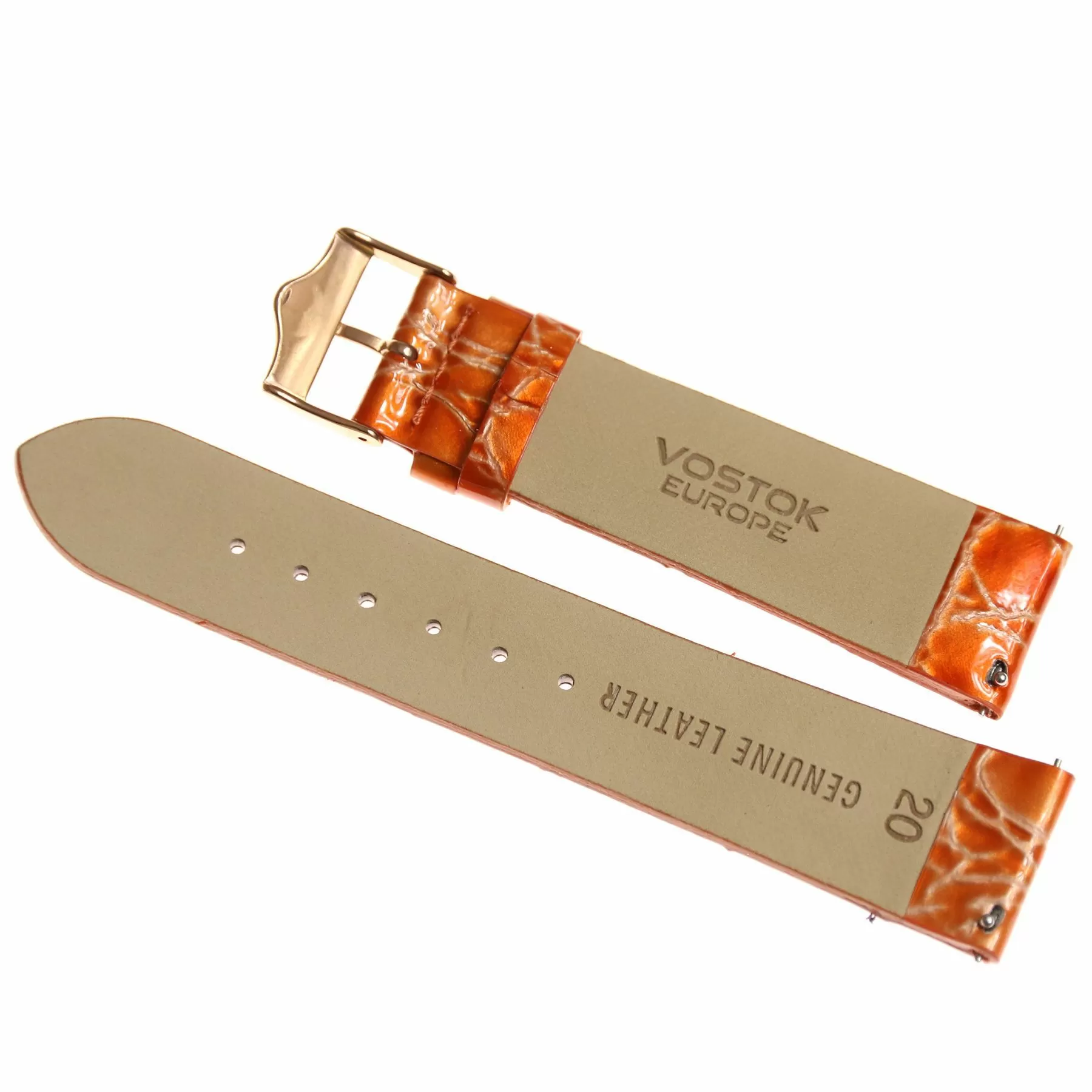 Oryginalny pasek skórzany w kolorze pomarańczowym perłowym z fakturą croco wyposażony w klamrę  w kolorze różowego złota, pasek ten  przeznaczony jest do zegarka damskiego Vostok Europe. Pasek ten powstał do kolekcji N1 Rocket i charakteryzuje się on najwyższą jakością wykonania, oryginalną kolorystyką i pełną zamiennością z innymi modelami z tej linii.