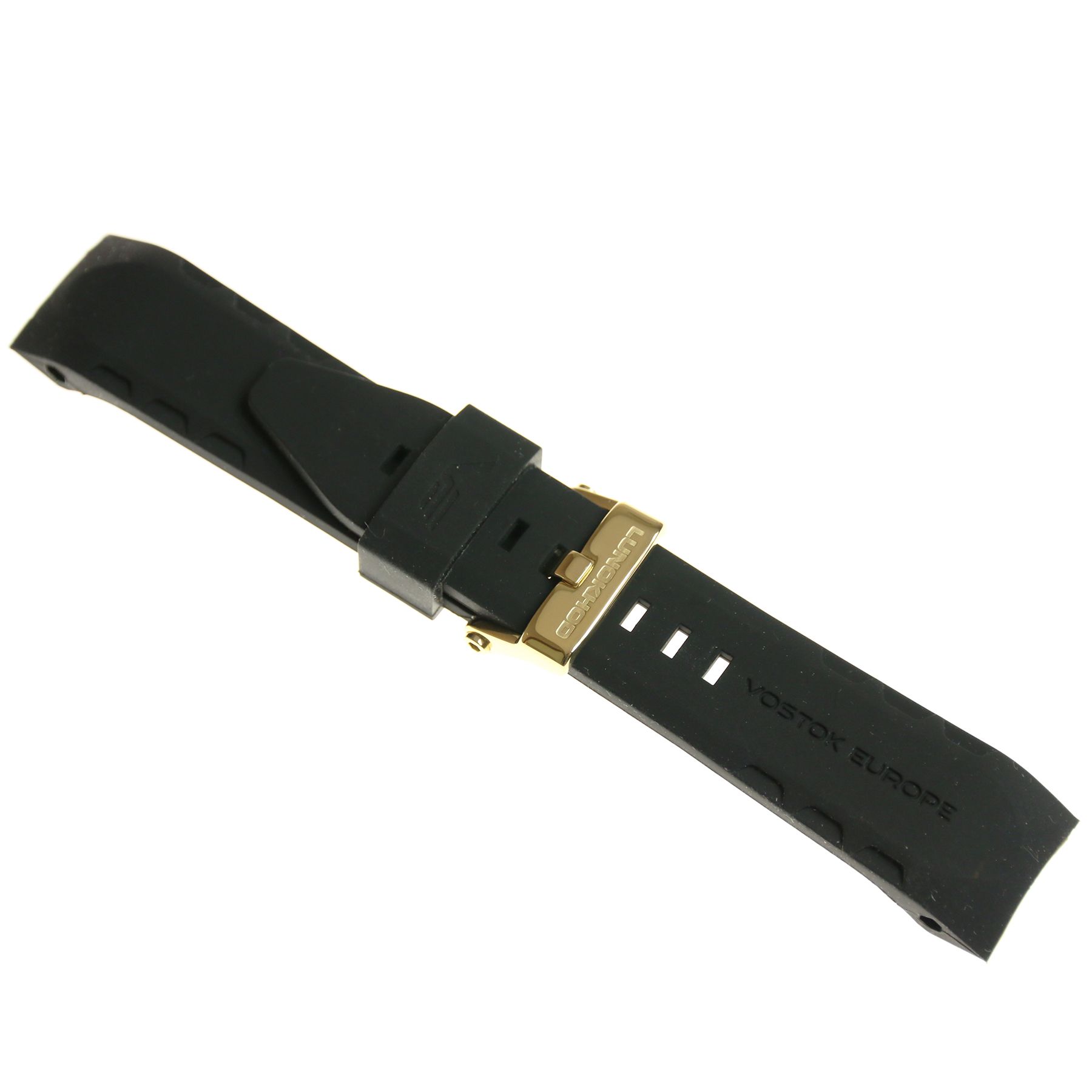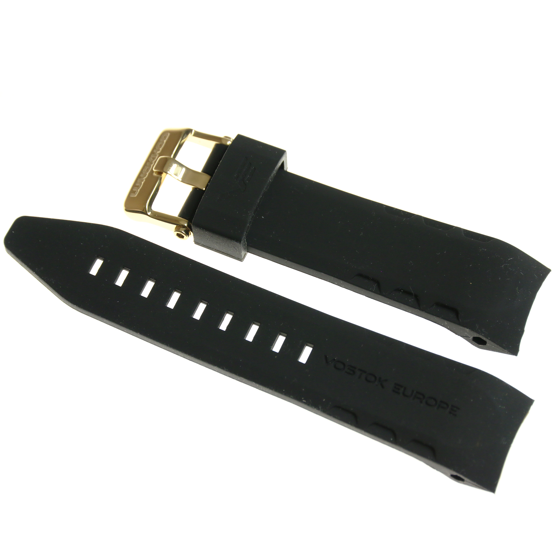 Oryginalny pasek silikonowy w kolorze czarnym wyposażony w klamrę błyszczącą w kolorze złotym, pasek ten  przeznaczony jest do zegarka Vostok Europe. Pasek ten powstał do kolekcji Lunokhod i charakteryzuje się on najwyższą jakością wykonania, oryginalną kolorystyką i pełną zamiennością z innymi modelami z tej linii.