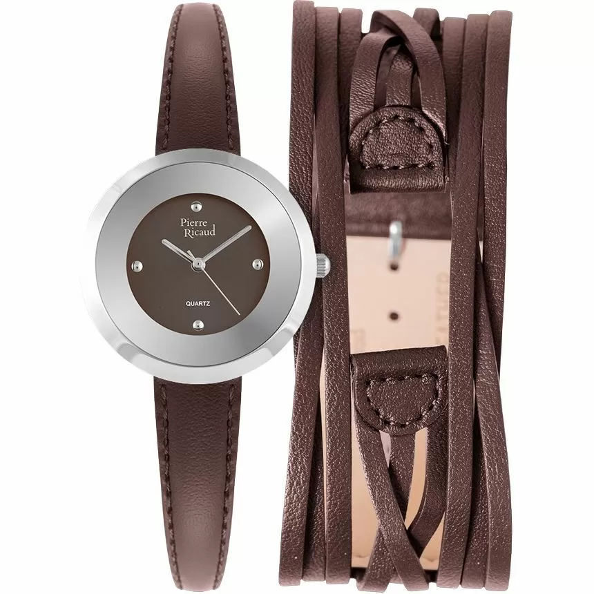 Zegarek damski Pierre Ricaud P22016.524GQ przychodzi w zestawie z dodatkowym, fantazyjnym paskiem ze skóry plecionej, w brązowym kolorze, który znakomicie koresponduje z brązowo-srebrną tarczą i srebrną kopertą. Wszystkie zegarki Pierre Ricaud to efekt pracy niemiecko-francuskiej firmy, która korzystając z osiągnięć i nowatorskich rozwiązań innych firm oferuje nowoczesne zegarki, które chętnie noszą nowoczesne kobiety. Jest on połączeniem nowoczesnego zegarmistrzostwa z tradycyjną sztuką tworzenia niezawodnych czasomierzy.