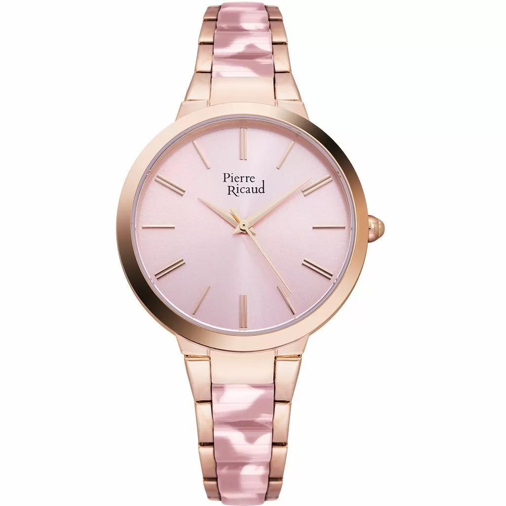 Zegarek damski Pierre Ricaud P22051.9I18Q łączy modny wygląd z atrakcyjną ceną; zachwycająca bransoleta z elementami ze wzorem pastelowego różu i koperta w różowo-złotym kolorze pasują idealnie do różowej satynowej tarczy, na której umieszczone zostały proste indeksy. Wszystkie zegarki Pierre Ricaud to efekt pracy niemiecko-francuskiej firmy, która korzystając z osiągnięć i nowatorskich rozwiązań innych firm oferuje nowoczesne zegarki, które chętnie noszą nowoczesne kobiety. Jak każdy zegarek Pierre Ricaud model P22051.9I18Q posiada dwuletnią gwarancję producenta. Jest on połączeniem nowoczesnego zegarmistrzostwa z tradycyjną sztuką tworzenia niezawodnych czasomierzy.