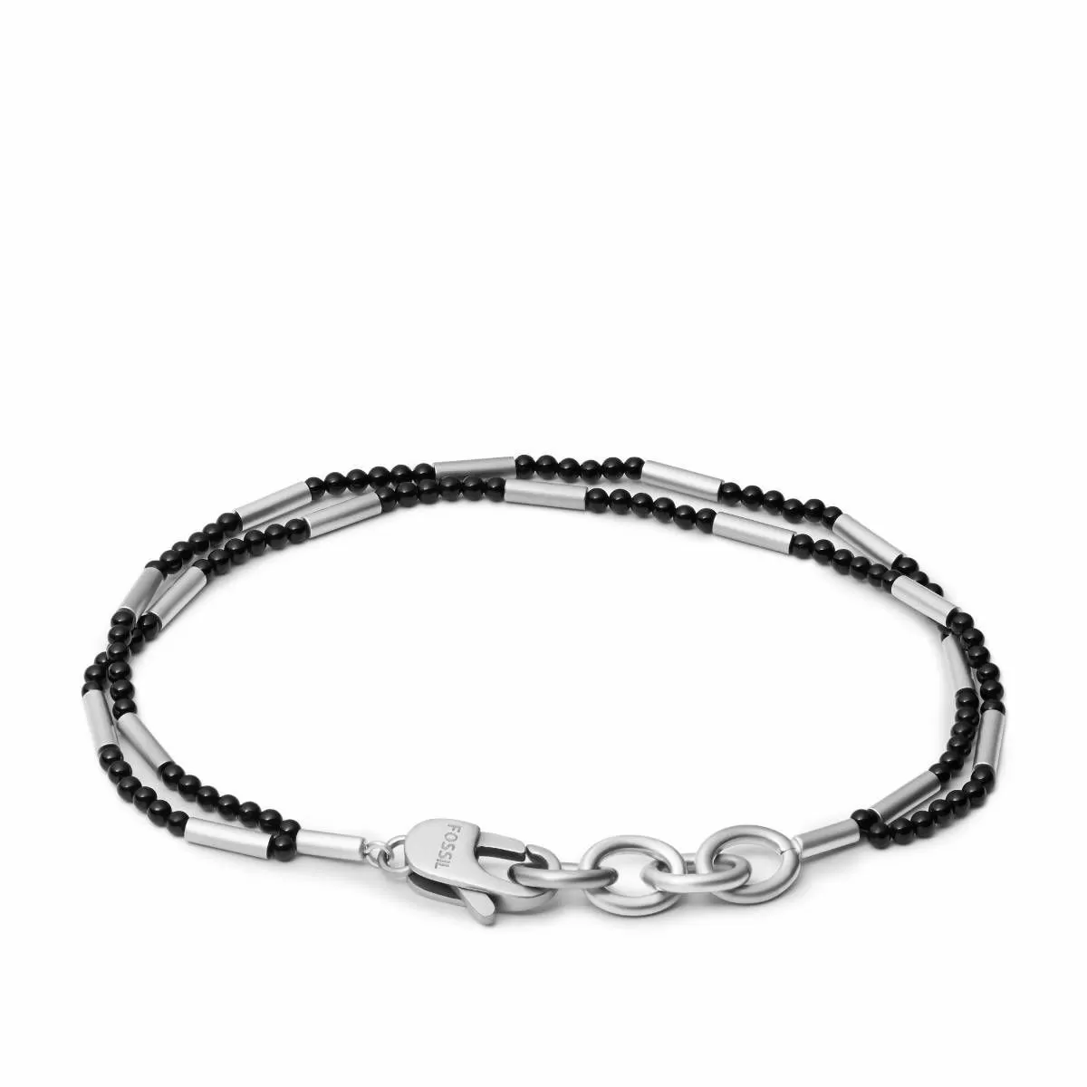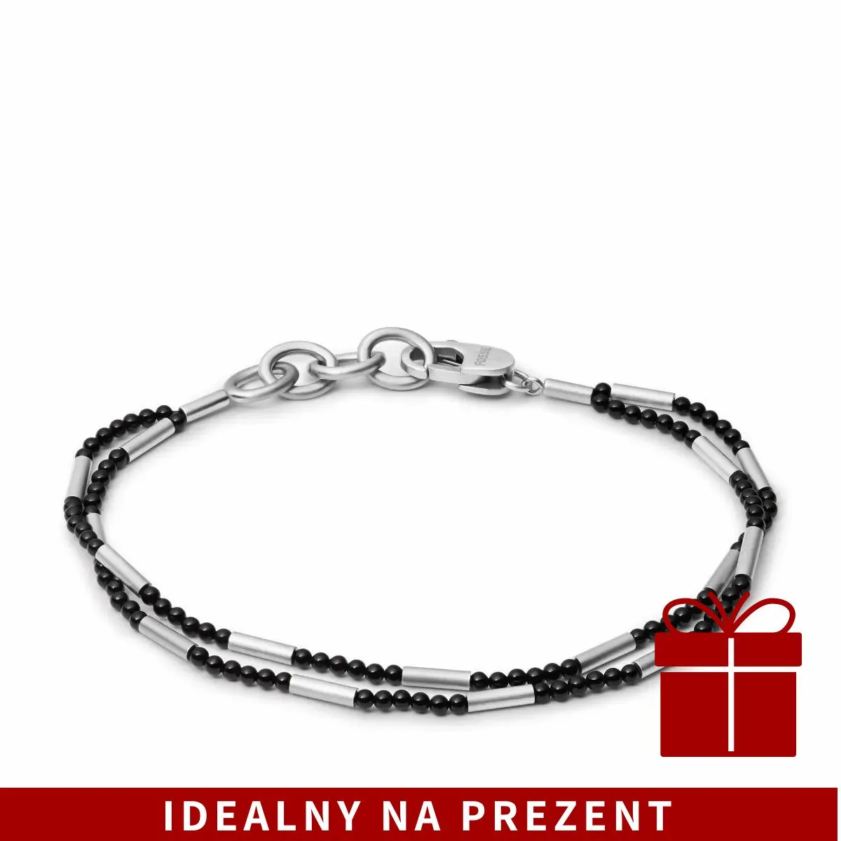 Męska bransoletka Fossil JF03682040 wykonana ze stali szlachetnej, podwójna, ozdobiona koralikami w kolorze czarnym . To idealny przykład biżuterii o modnym i nowoczesnym charakterze, nawiązującej delikatnie do stylu vintage. Biżuteria Fossil to część kolekcji oferowanej przez jedną z najbardziej znanych amerykańskich marek, która kieruje swoje produkty dla zarówno kobiet, jak i mężczyzn w każdym wieku.