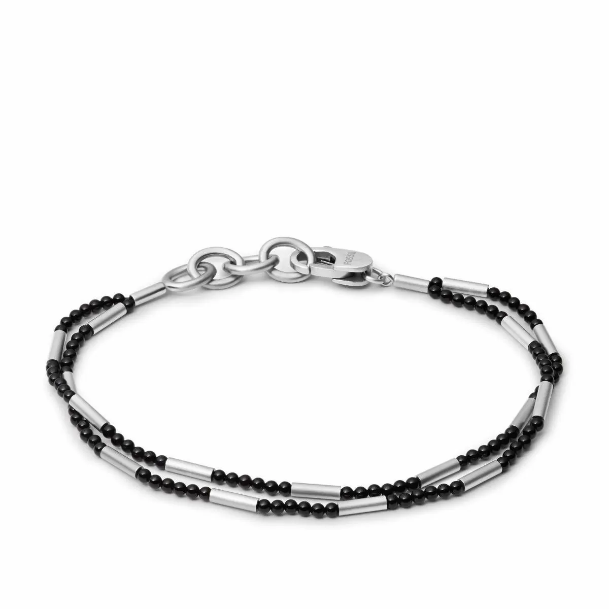Podwójna męska bransoleta Fossil czarno-srebrna JF03682040