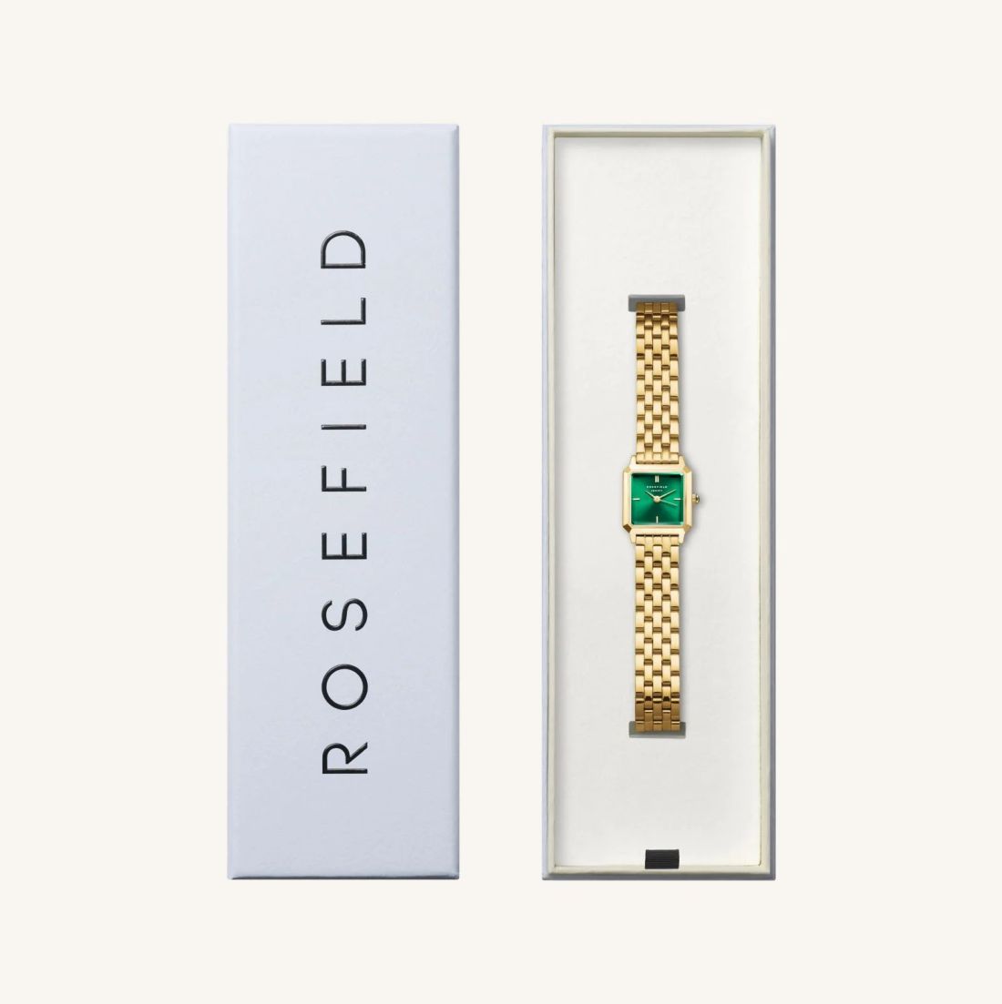 Zegarek Rosefield BEGSG-B05 to piękny minimalistyczny zegarek, który podkreśli urodę i klasyczny styl użytkowniczki. To nie tylko narzędzie do mierzenia czasu, ale także ważny element Twojego stylu. Model Rosefield BEGSG-B05 jest szczególnym przykładem zegarka, który łączy w sobie elegancję, prostotę i funkcjonalność, ma złotą prostokątną kopertę, szmaragdową tarczę i złotą bransoletkę.