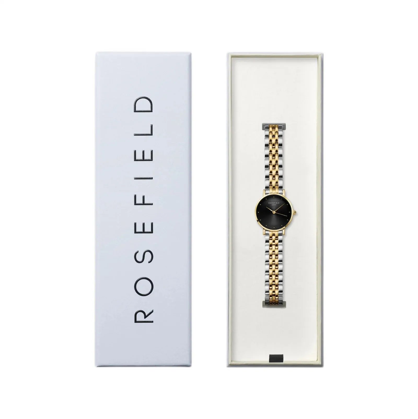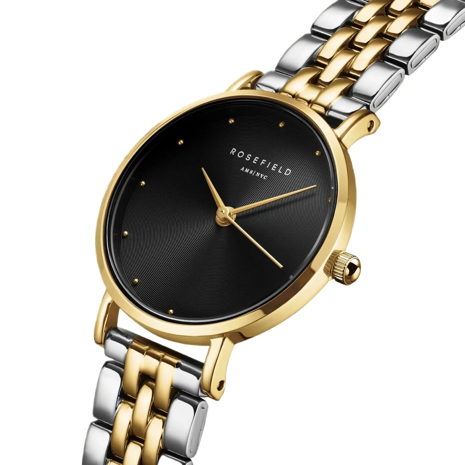 Rosefield Duotone SEBDSG-SE04 - srebrno-złoty zegarek damski z czarną tarczą w stylu nowoczesnej klasyki