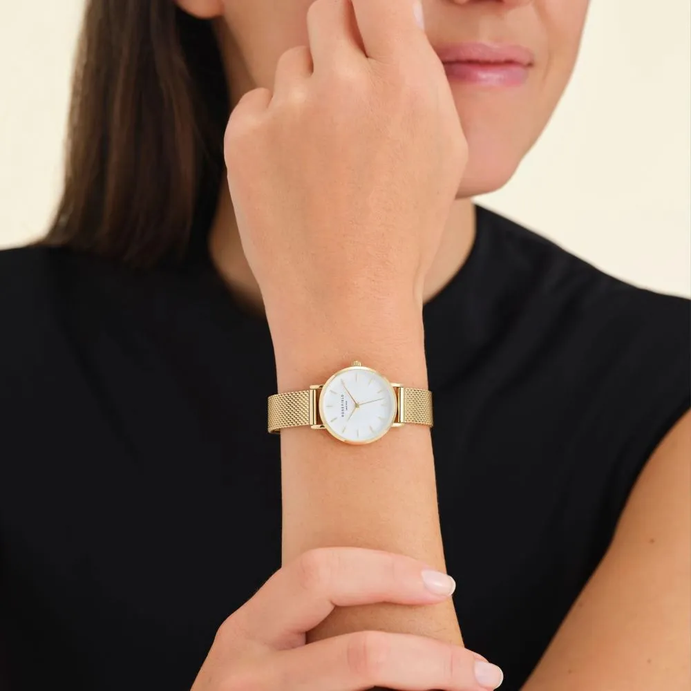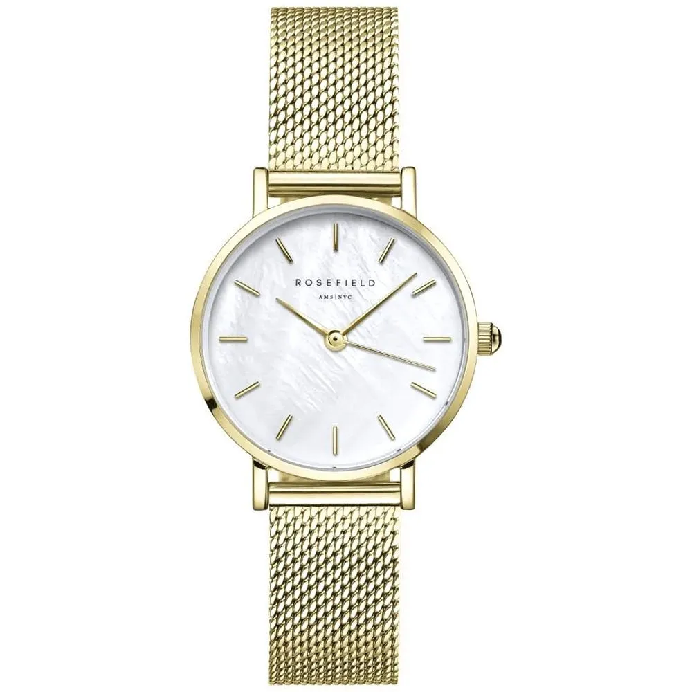 Zegarek Rosefield Small Edit SMGMG-S06 to piękny czasomierz, który podkreśli urodę i klasyczny styl użytkowniczki. To nie tylko narzędzie do mierzenia czasu, ale także ważny element Twojego stylu. Model Rosefield SMGMG-S06 jest szczególnym przykładem zegarka, który łączy w sobie elegancję, prostotę i funkcjonalność, zegarek ma złotą kopertę, jasną tarczę z masy perłowej i złotą bransoletkę.