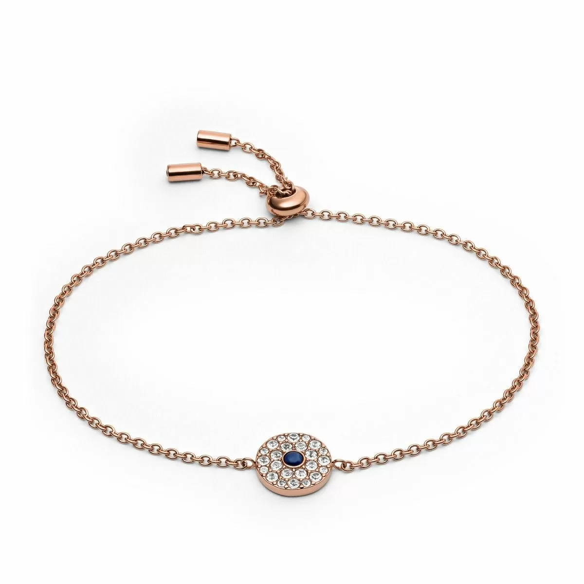 Różowozłota bransoletka Fossil regulowana z kryształami JF03584791