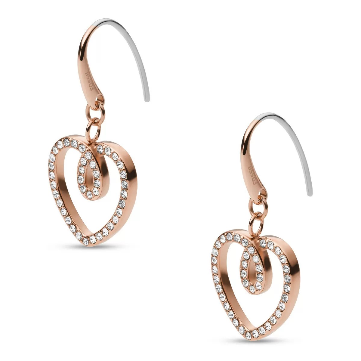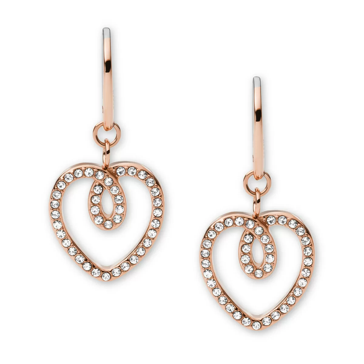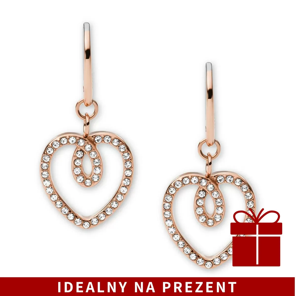 Różowozłote kolczyki Fossil wiszące serca JOF00755791