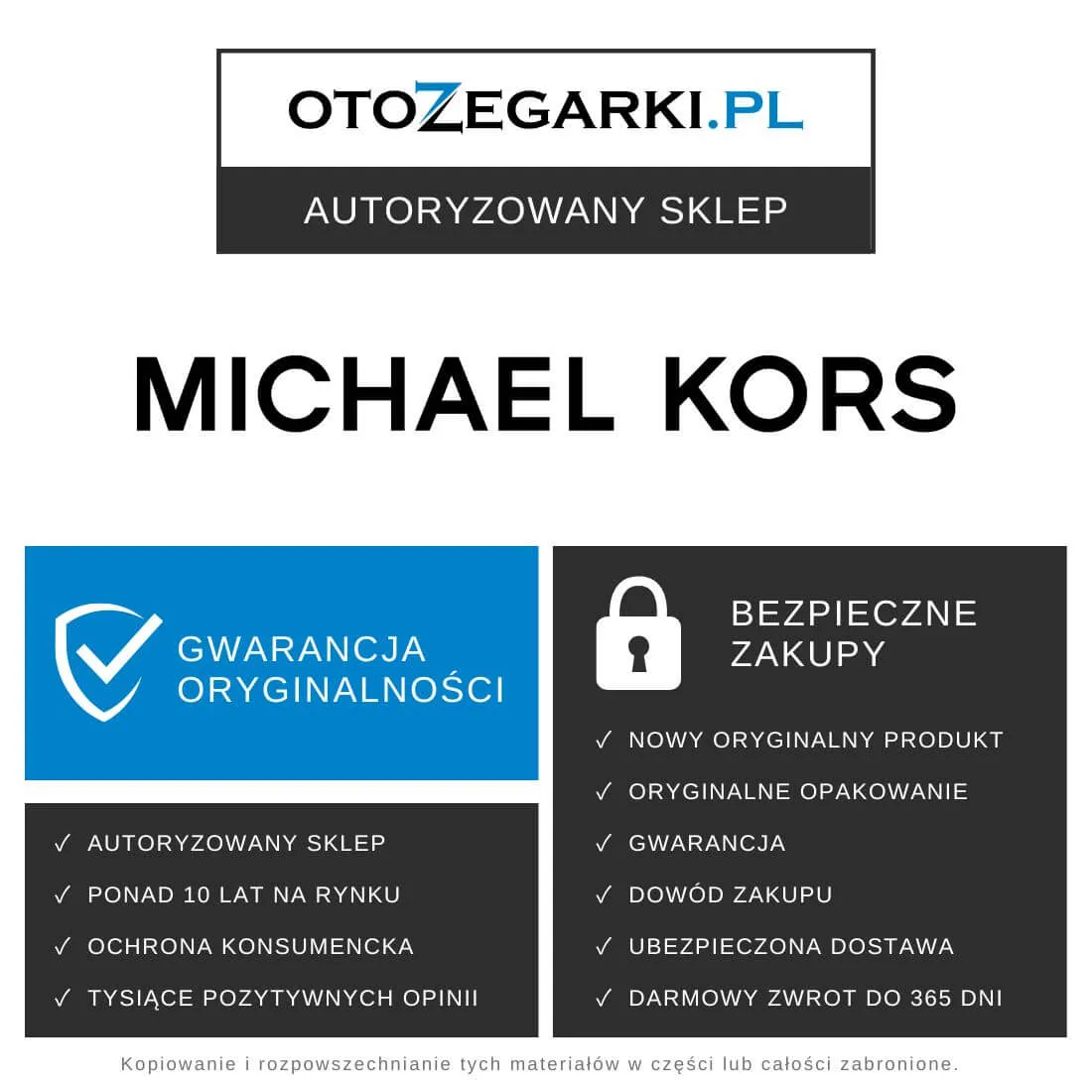 ✓ oryginalny zegarek Michael Kors / oryginalną biżuterię Michael Kors,