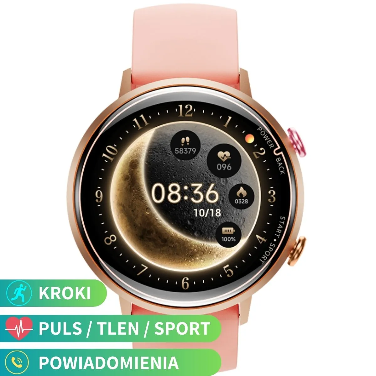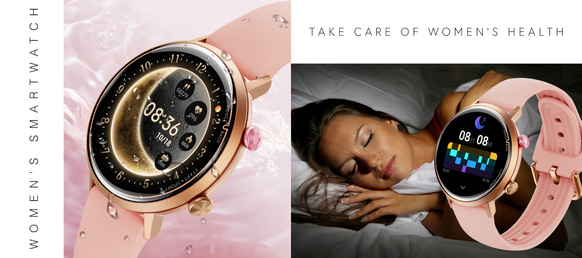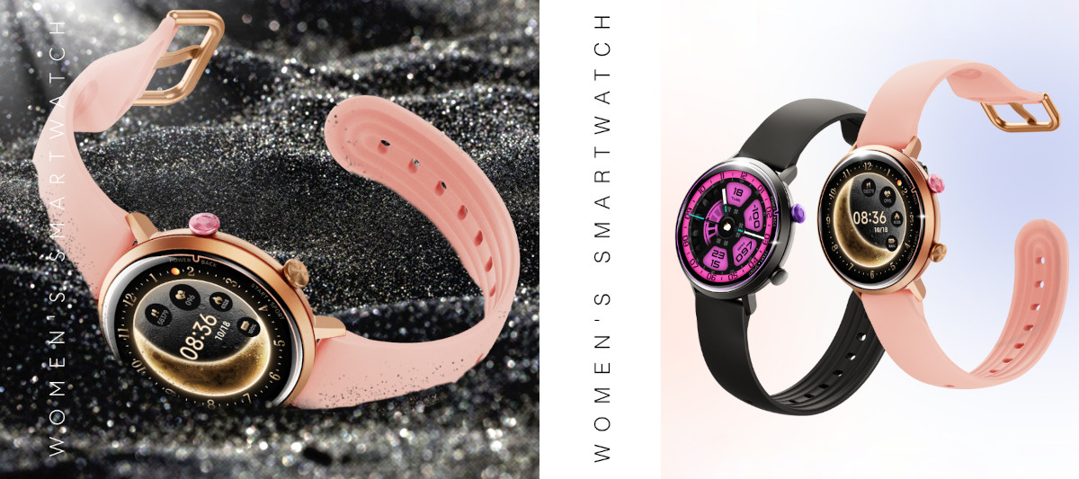 Damskie modele cechuje ciekawa kolorystyka. Mowa tu o białych, srebrnych, szarych, różowych, a nawet różowo-złotych zegarkach dla kobiet. Marka ma w sprzedaży również uniwersalne z względu na design czarne smartwatche damskie.