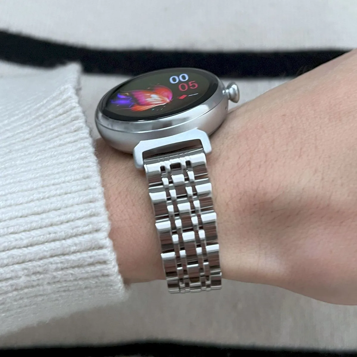 Damskie modele cechuje ciekawa kolorystyka. Mowa tu o białych, srebrnych, szarych, różowych, a nawet różowo-złotych zegarkach dla kobiet. Marka ma w sprzedaży również uniwersalne z względu na design czarne smartwatche damskie.