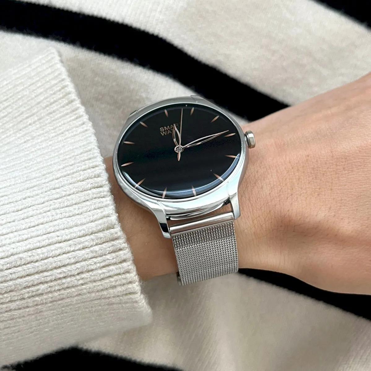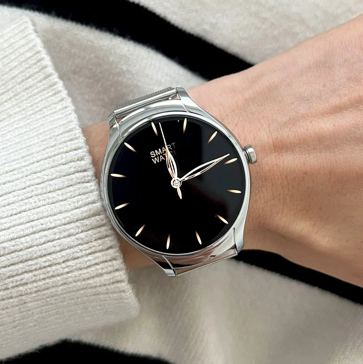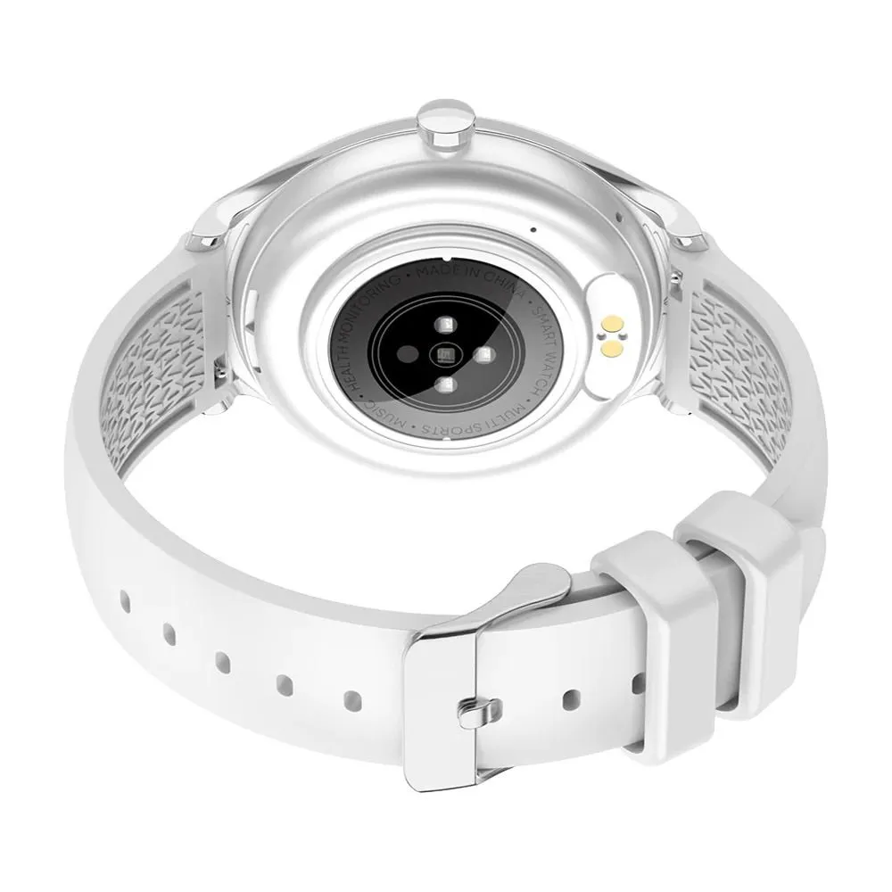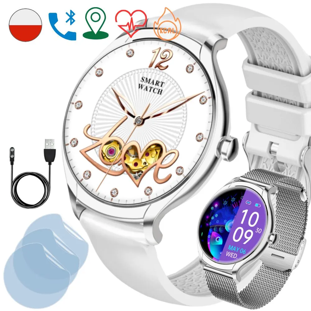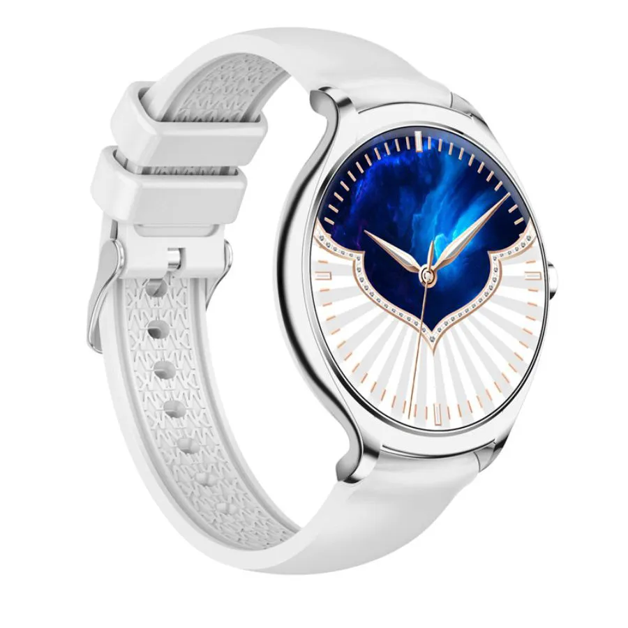 Damskie modele cechuje ciekawa kolorystyka. Mowa tu o białych, srebrnych, szarych, różowych, a nawet różowo-złotych zegarkach dla kobiet. Marka ma w sprzedaży również uniwersalne z względu na design czarne smartwatche damskie.