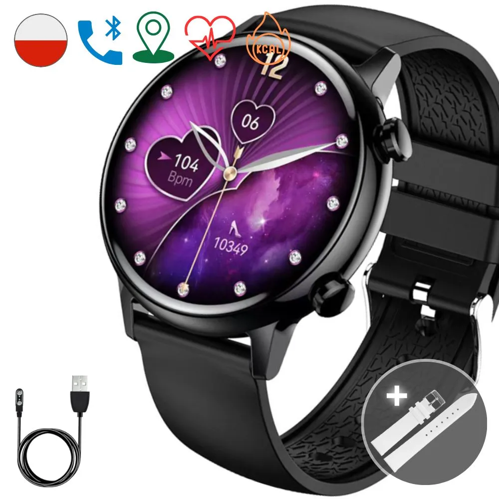 Smartwatch damski Rubicon Love Amoled czarny + biały pasek