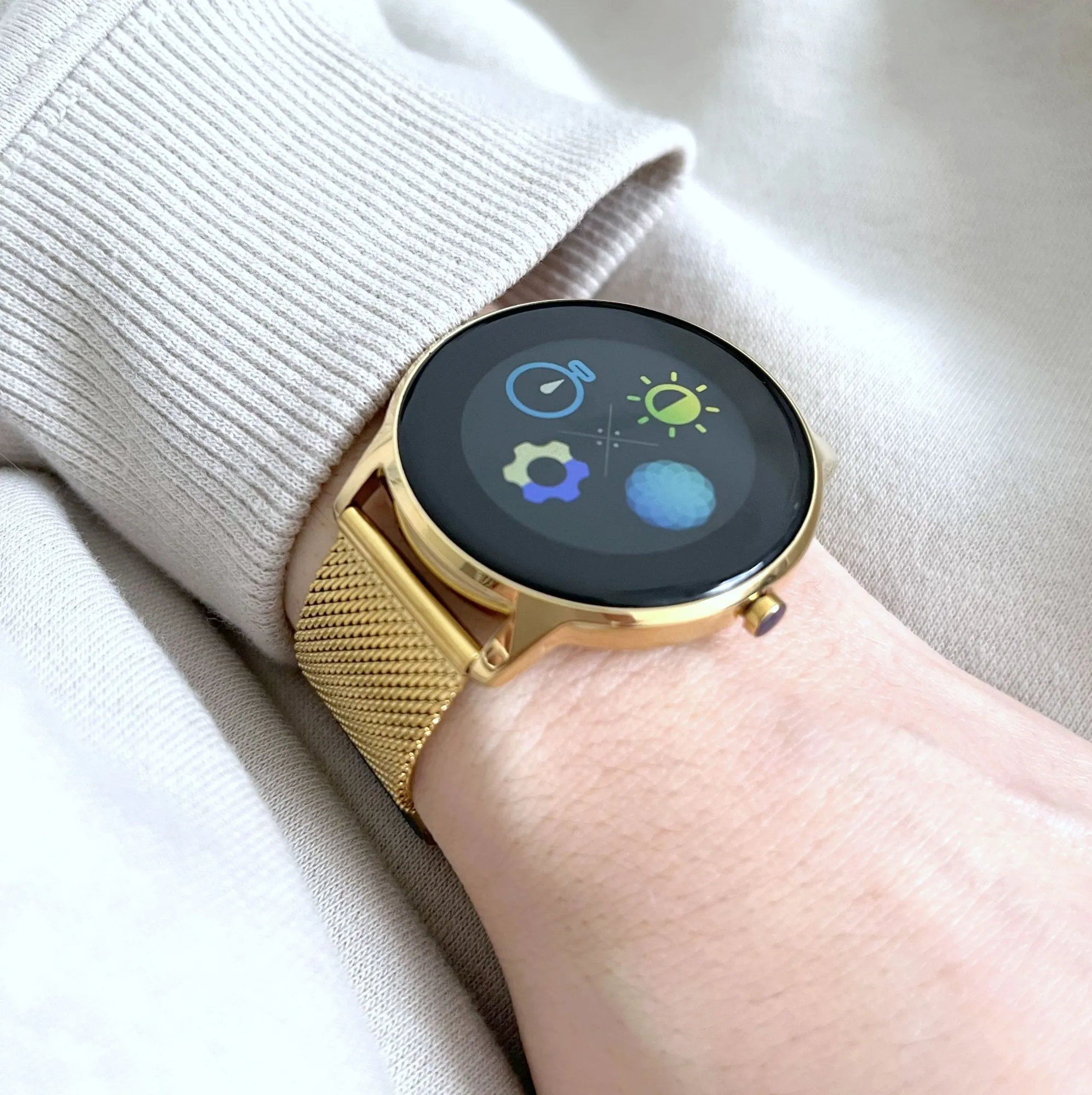 Damskie modele cechuje ciekawa kolorystyka. Mowa tu o białych, srebrnych, szarych, różowych, a nawet różowo-złotych zegarkach dla kobiet. Marka ma w sprzedaży również uniwersalne z względu na design czarne smartwatche damskie.