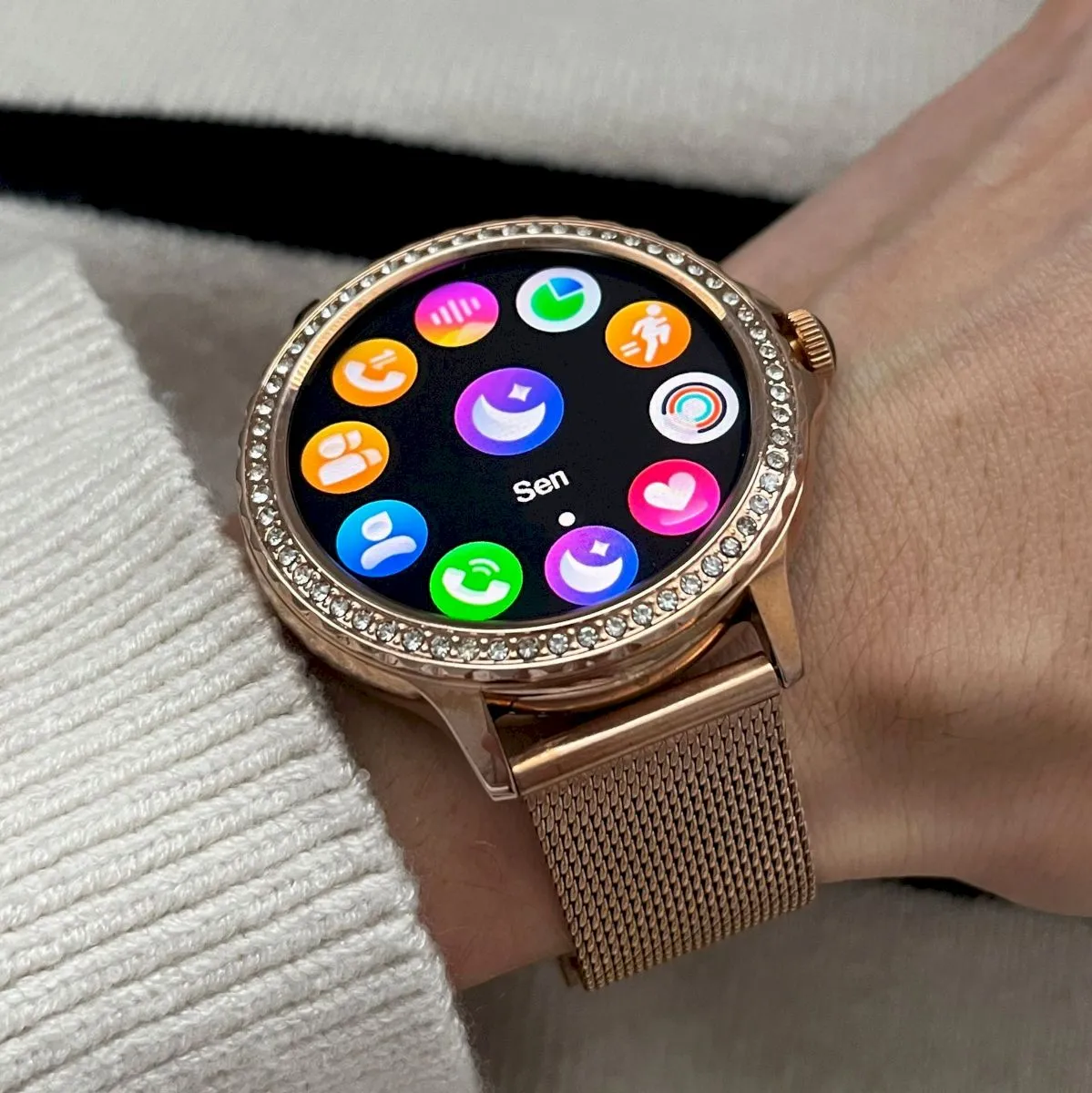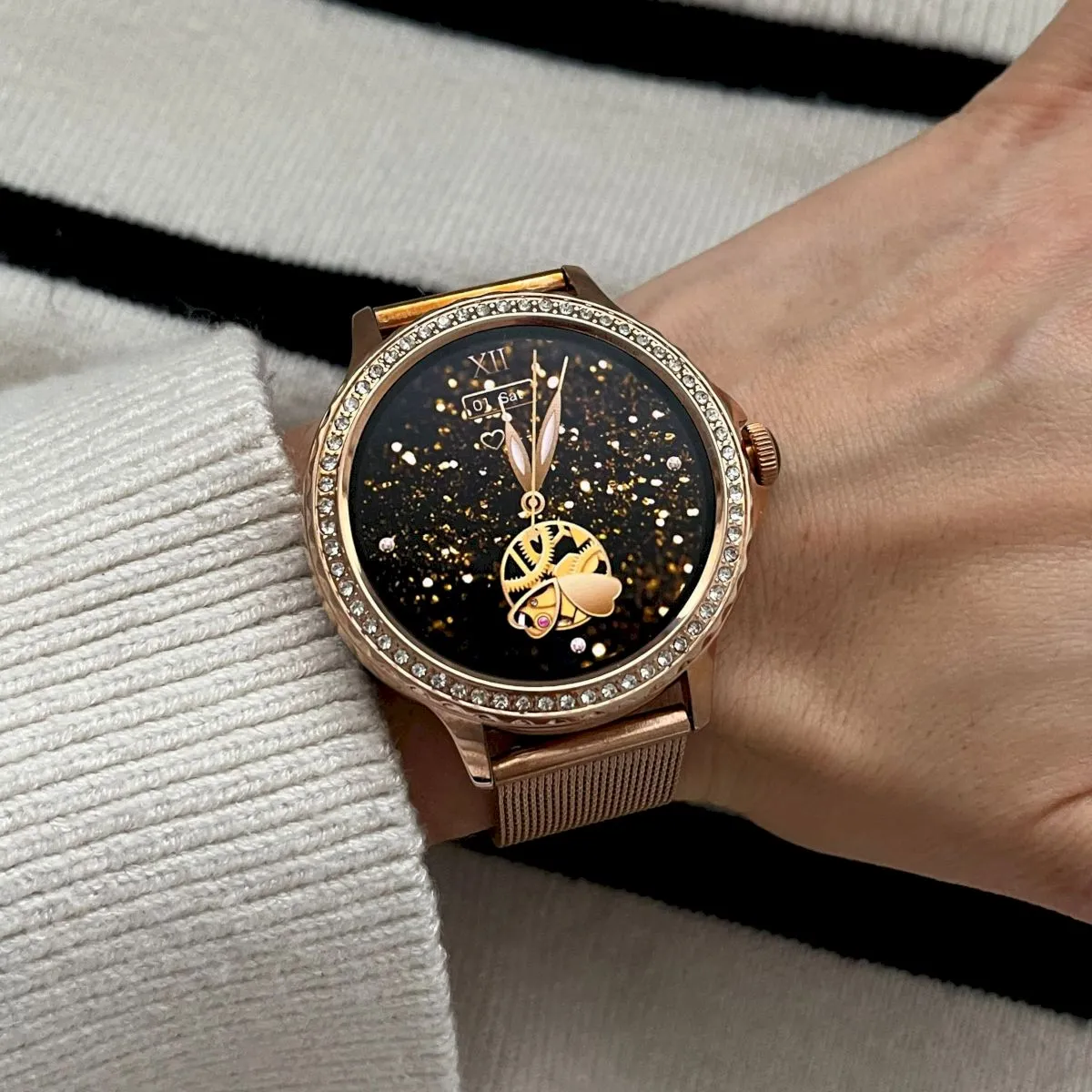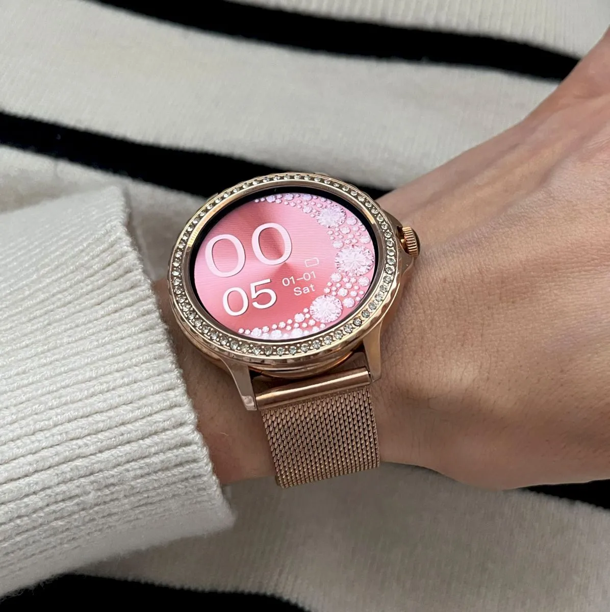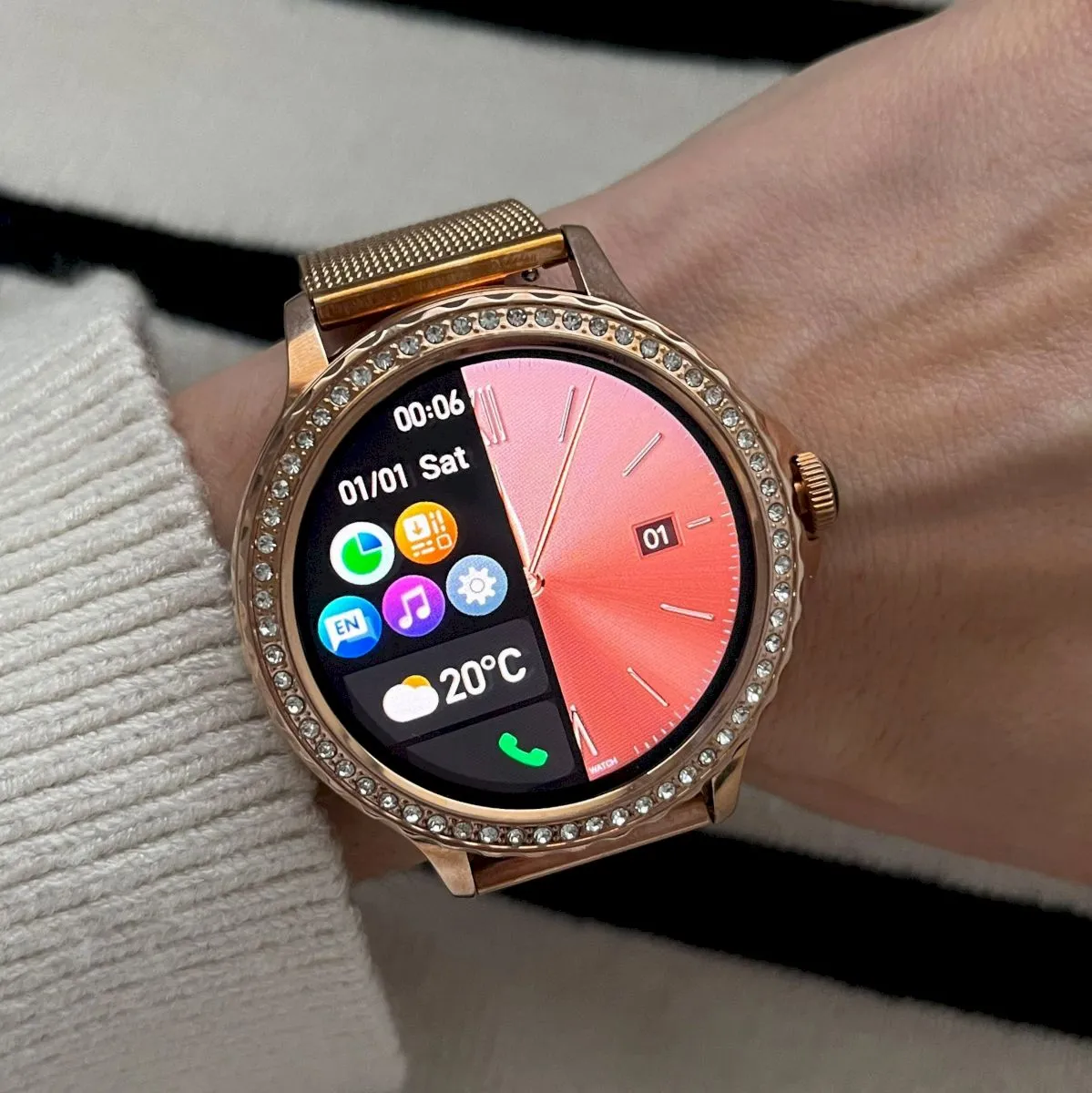 Smartwatch damski z funkcją rozmowy Rubicon Tiffany z kryształkami