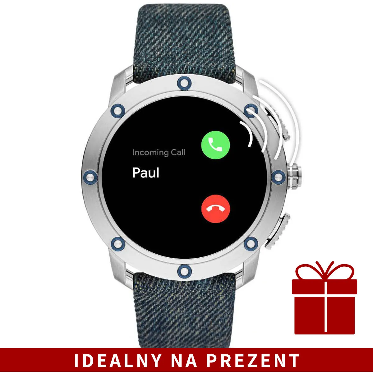 Smartwatch Diesel z jedynym w kolekcji denimowym, jeansowym paskiem. Prezentuje się rewelacyjnie, jednocześnie prezentując bardzo nowoczesne wzornictwo, ale także zapewniając ogrom funkcji. DZT2015 należy do 5. generacji smartwatchy tego amerykańskiego producenta i tym, co wyróżnia tą edycję, jest wbudowany głośnik i mikrofon, co pozwala na głosową obsługę wybranych funkcjonalności, opiekę asystenta Google, a także na prowadzenie rozmów! (aktualnie tylko dla Androida).