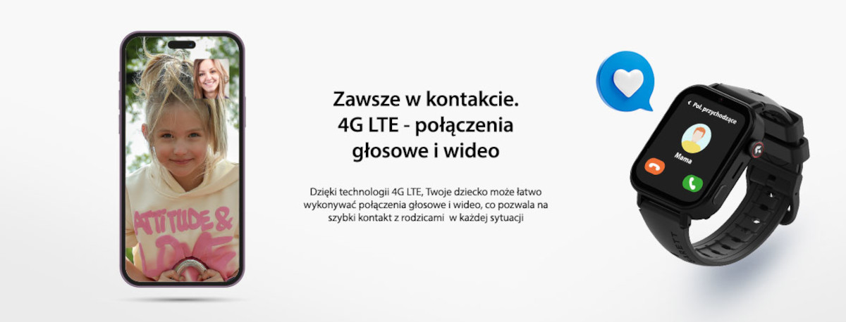Każdy rodzic chce wiedzieć, co dzieje się z jego dzieckiem i mieć całkowitą pewność, że jest ono w pełni bezpieczne. Teraz dzięki smartwatchowi możesz być spokojny, gdyż wykorzystuje on cztery metody lokalizacji urządzenia – GPS, WiFi, LBS i AGPS. Jeśli jeden ze sposobów zawiedzie, pozostają jeszcze trzy inne – teraz bez problemu zlokalizujesz swoje dziecko. Dużą zaletą modelu jest również obsługa 4G LTE. Umożliwia ona połączenie smartwatcha z siecią w praktycznie każdym miejscu w Polsce.