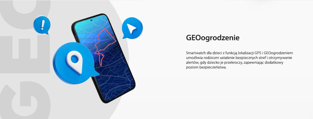 O bezpieczeństwo dziecka zadbają nie tylko funkcje powiązane z dokładną lokalizacją czy odbieraniem telefonów, lecz także pozostałe, niezbędne rozszerzenia. Opcja GEOogrodzenia pozwala Ci na wyznaczenie obszaru, po którym może poruszać się użytkownik smartwatcha. W momencie, gdy opuści on wyznaczoną przestrzeń, szybko dostaniesz wiadomość o tym informującą. Zdalny podsłuch pozwoli Ci mieć lepszy wgląd w to, co aktualnie robi dziecko. Natomiast w przypadku zagrożenia może ono wykorzystać przycisk SOS, który od razu wezwie niezbędną w tym momencie pomoc.