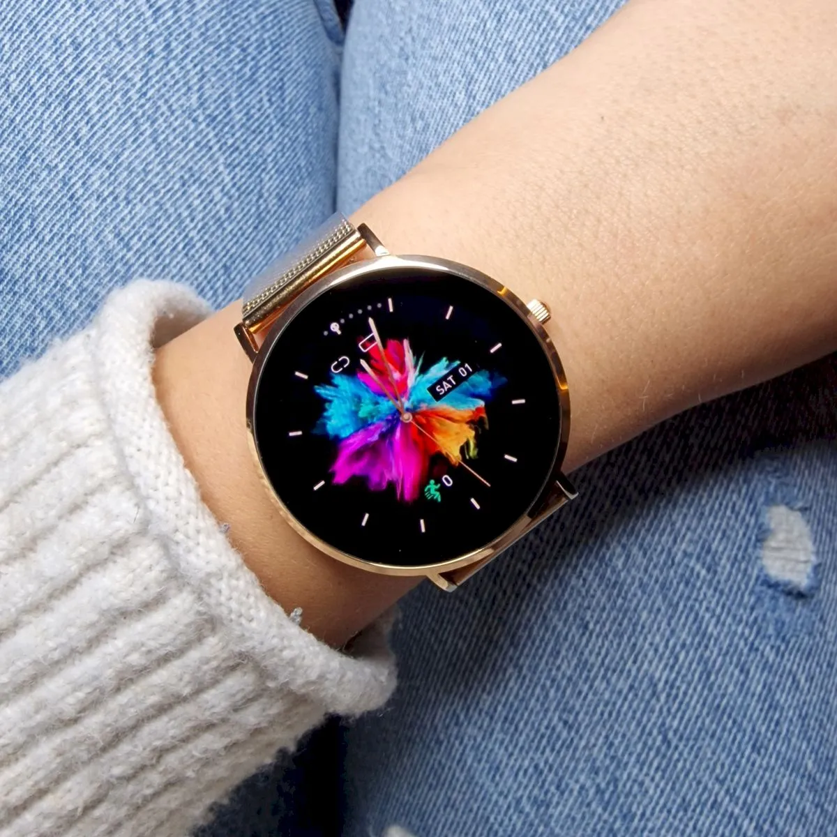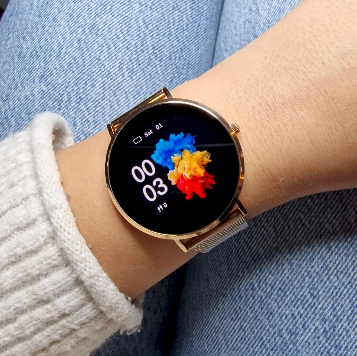 Prawdopodobnie najlepsza propozycja dla wszystkich kobiet, które szukają smartwatcha w wyglądzie klasycznego zegarka. Idealnie okrągła obudowa w złotym kolorze i złota bransoletka typu mesh, a przy tym ultracieńka jak na smartwatcha koperta, a w niej ukryty dotykowy kolorowy ekran z wyświetlaczem AMOLED - damski smartwatch Garett Verona zachwyca zarówno wyglądem, jak i funkcjonalnością. Najbardziej potrzebne opcje w codziennym życiu, powiadomienia, tryby sportowe oraz monitor aktywności i snu. Polecamy!