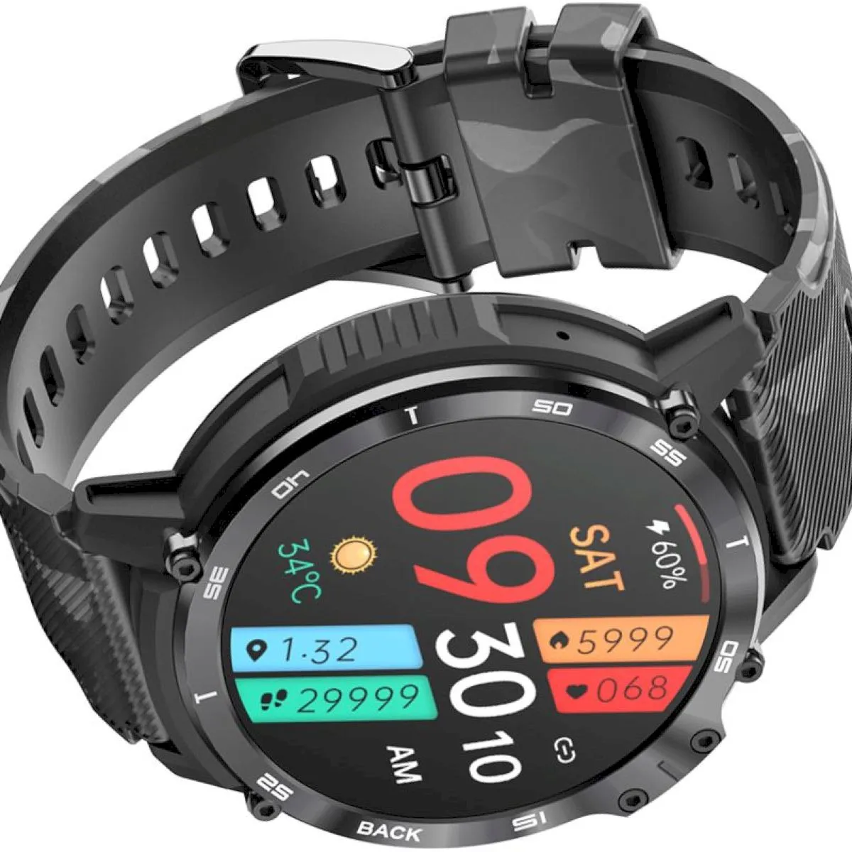 Smartwatch męski Rubicon Military czarny moro + ochrona ekranu