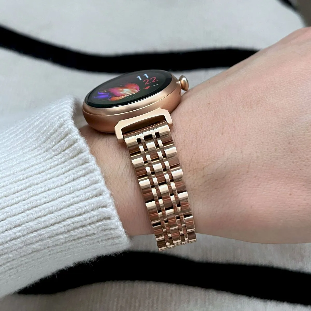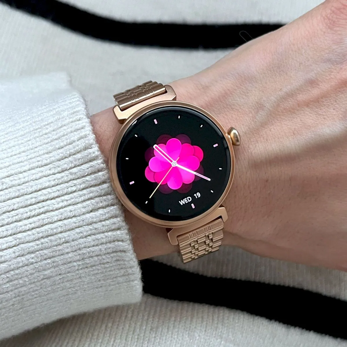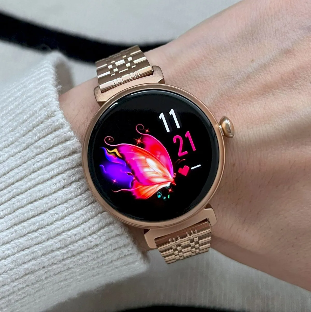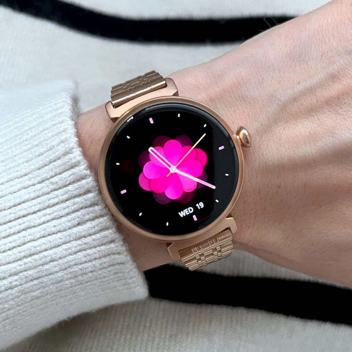 Damskie modele cechuje ciekawa kolorystyka. Mowa tu o białych, srebrnych, szarych, różowych, a nawet różowo-złotych zegarkach dla kobiet. Marka ma w sprzedaży również uniwersalne z względu na design czarne smartwatche damskie.