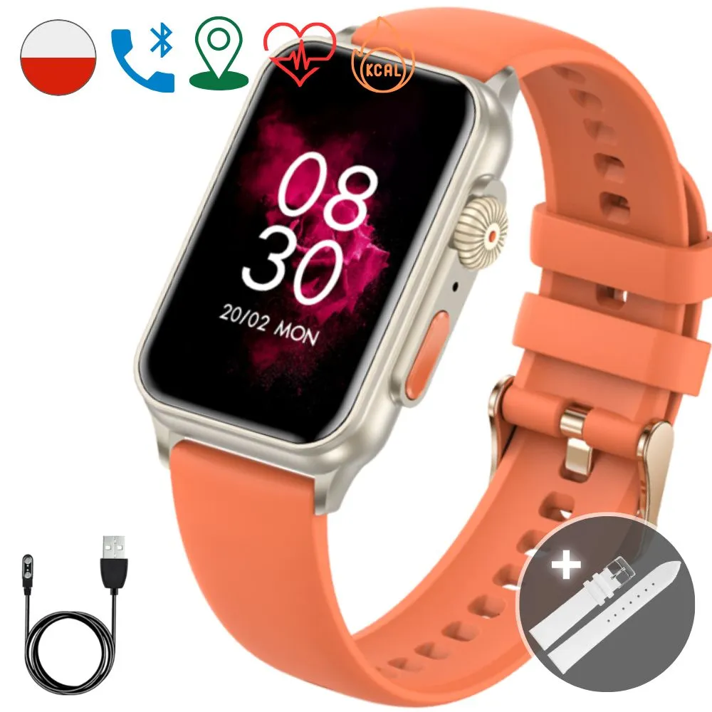 Smartwatch Rubicon Mini z funkcją rozmowy to elegancki zegarek smartwatch Rubicon z obudową złotą z pomarańczowym paskiem. Ten model, to kompromis między nowoczesnym technologicznie urzadzeniem, a szykownym wyglądem. Na nadgarstku prezentuje się pięknie, świetnie pasuje do koszuli, czy eleganckiej sukienki, ale też na co dzień, a z paskiem nawet do sportowego stroju.