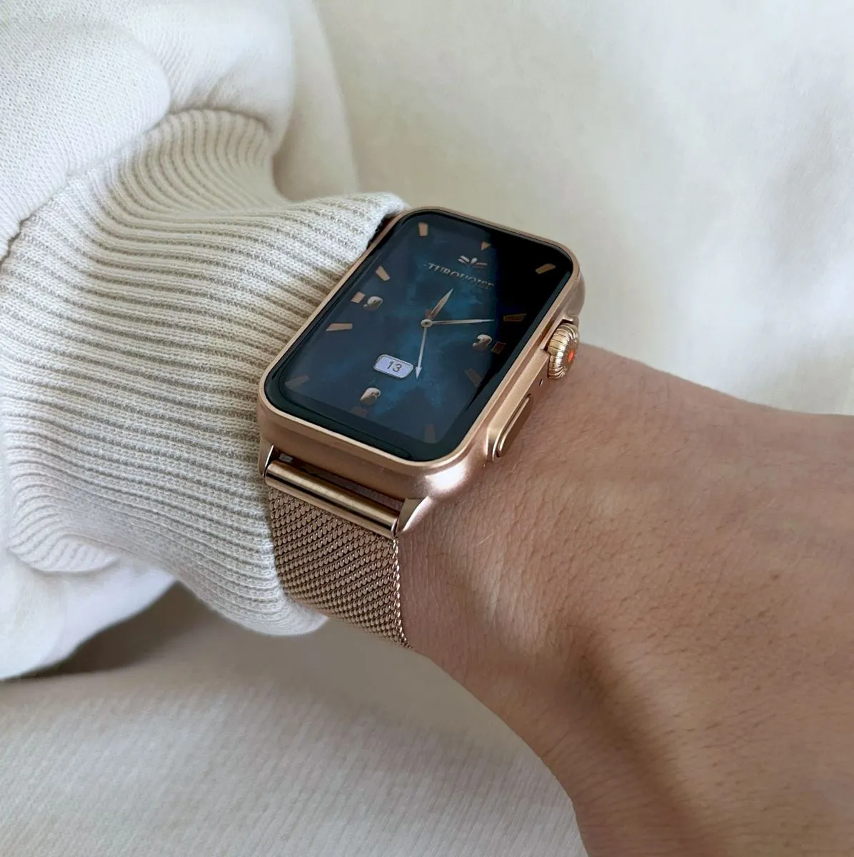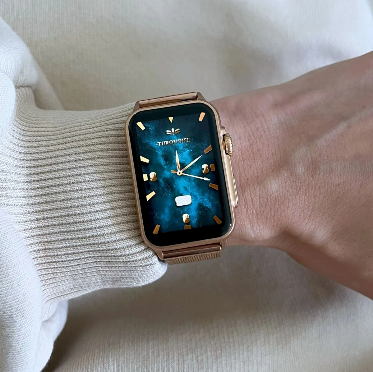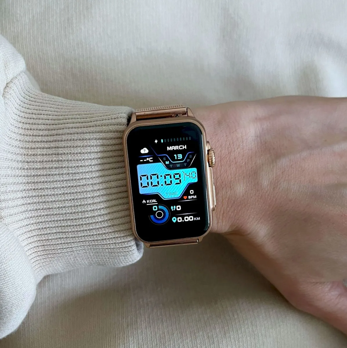 Smartwatch Rubicon Mini z funkcją rozmowy to elegancki zegarek smartwatch Rubicon z obudową złotą z bransoletką mesh. Ten model, to kompromis między nowoczesnym technologicznie urzadzeniem, a szykownym wyglądem. Na nadgarstku prezentuje się pięknie, świetnie pasuje do koszuli, czy eleganckiej sukienki, ale też na co dzień, a z paskiem nawet do sportowego stroju.