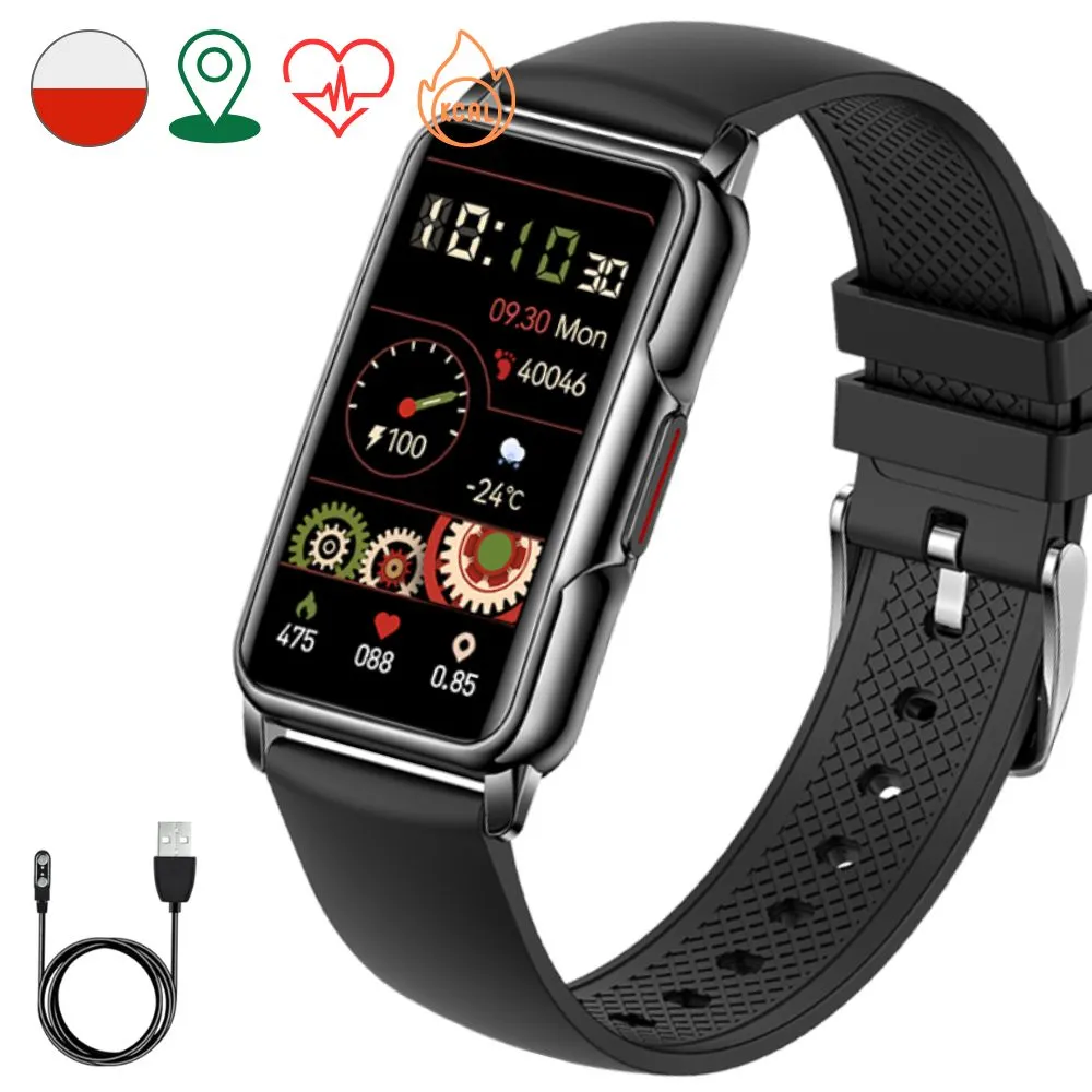 Rubicon Ola to elegancki zegarek smartwatch Rubicon typu smartband z obudową w czarnym odcieniu i czarnym paskiem. Ten model, to kompromis między nowoczesnym technologicznie urzadzeniem, a szykownym wyglądem. Na nadgarstku prezentuje się pięknie, świetnie pasuje do koszuli, czy eleganckiej sukienki, ale też na co dzień, a z paskiem nawet do sportowego stroju. Warto mieć go zawsze na nadgarstku, ze względu na funkcję powiadomień, ale też funkcje zdrowotne - pulsometr, ciśnieniomierz i pulsoksymetr, a nawet podczas treningu, gdyż posiada aż 20 trybów sportowych. Polecamy dla osób w każdym wieku, gdyż to bardzo uniwersalna stylistyka i ponadczasowy wygląd. Obsługa jest prosta i intuicyjna, a menu oraz aplikacja posiadają j. polski.