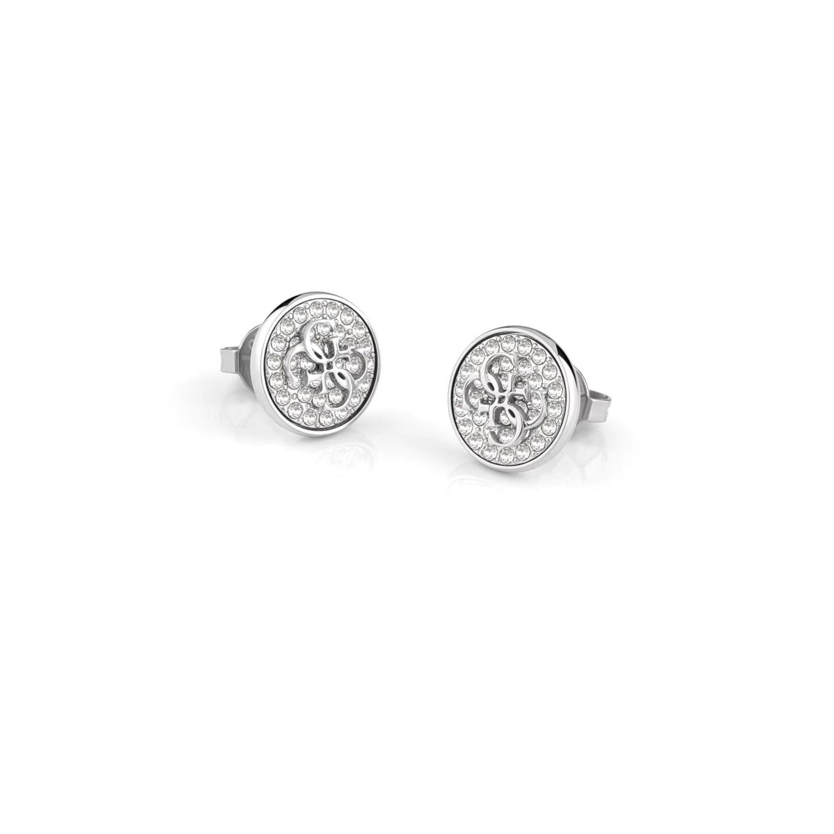Srebrne kolczyki Guess monety z kryształami i logiem 4G