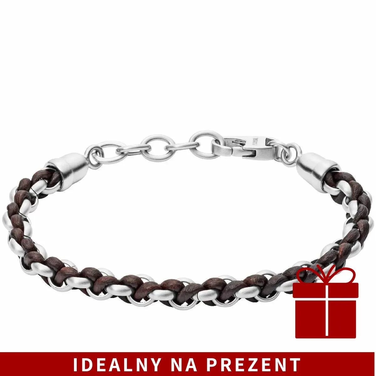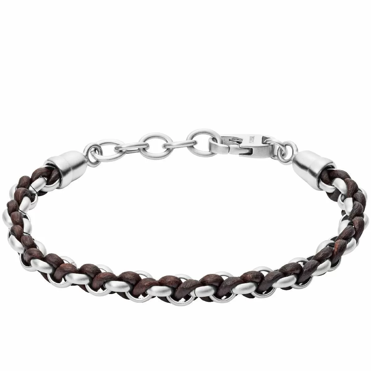 Srebrno-brązowa pleciona bransoletka Fossil męska JF02936040