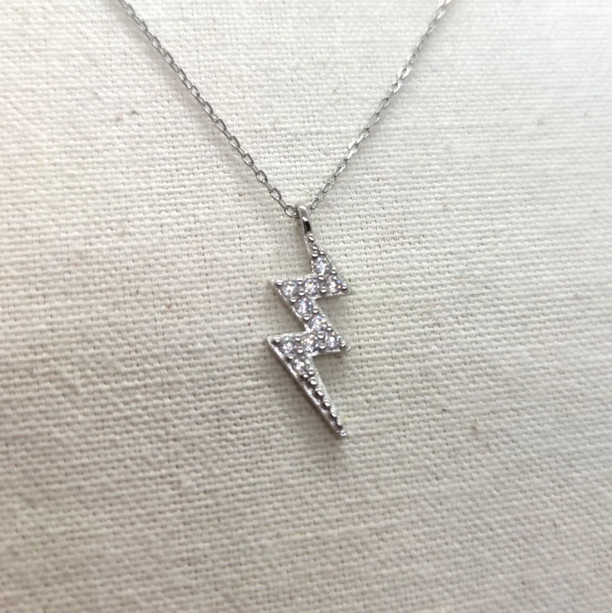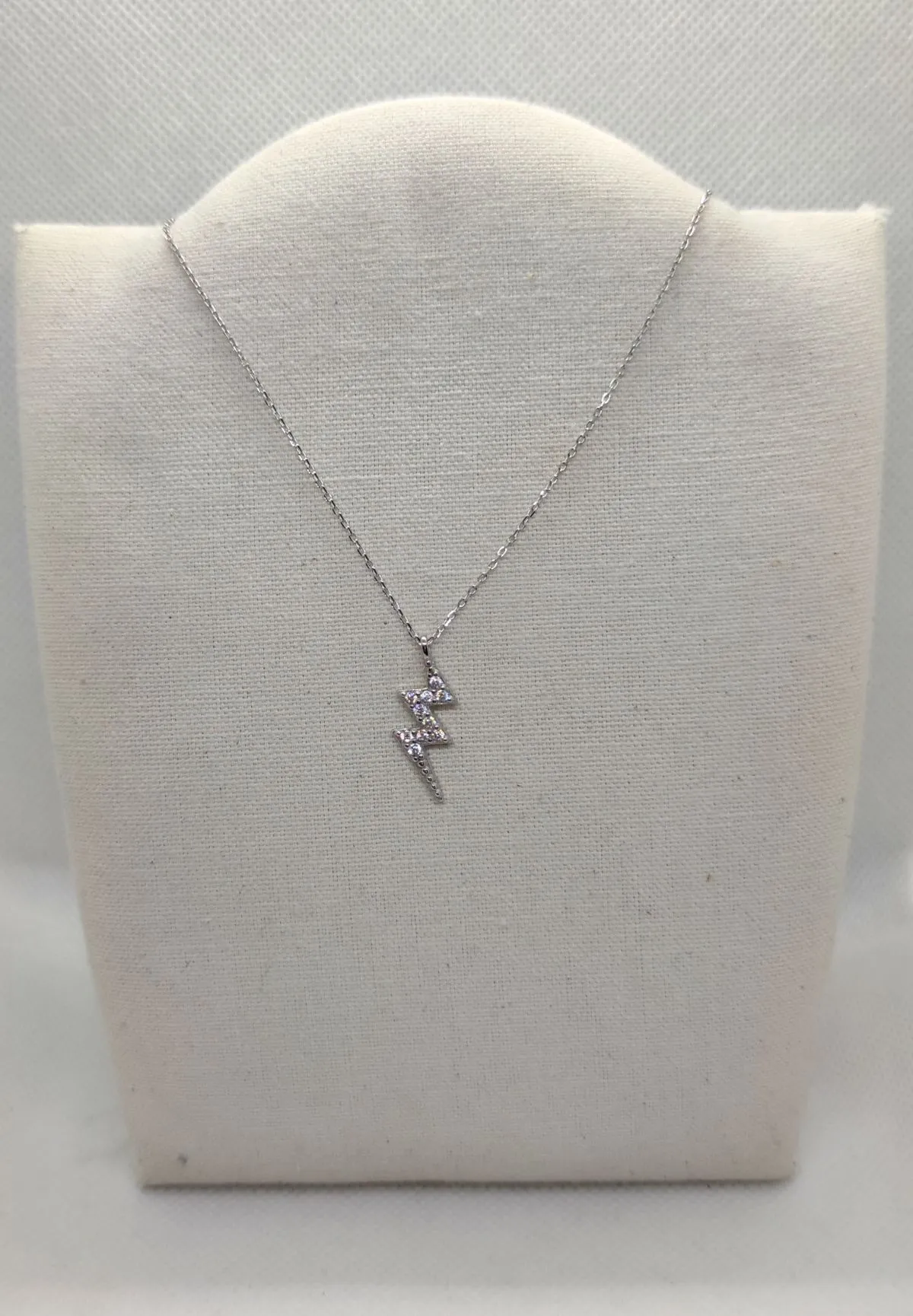 Srebrny naszyjnik damski z zawieszką w postaci błyskawicy z białymi cyrkoniami