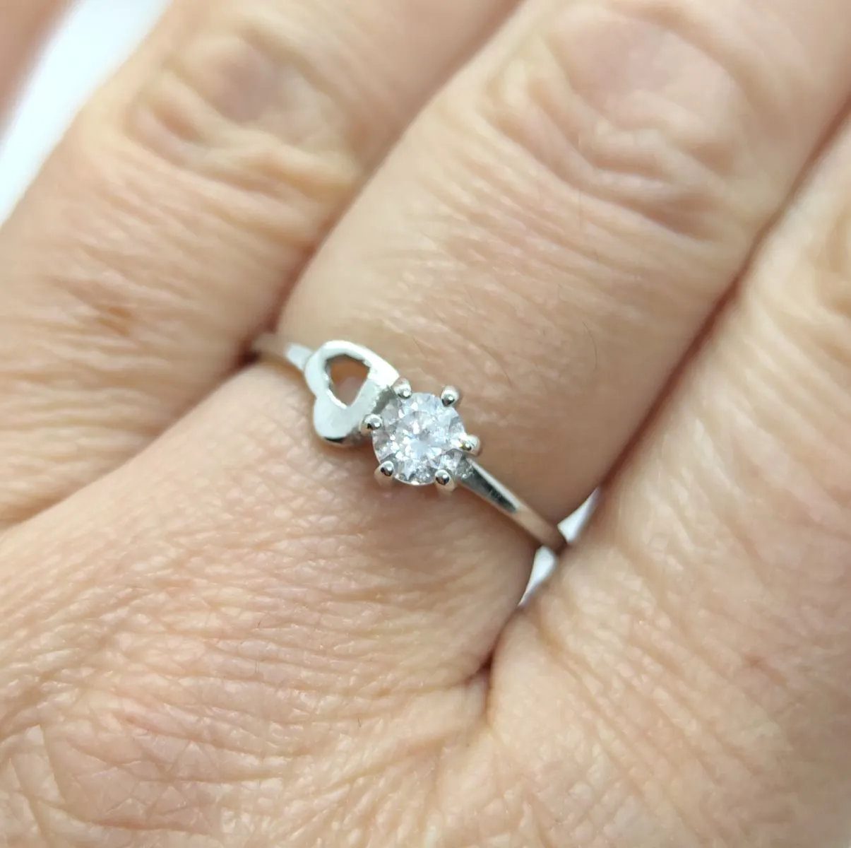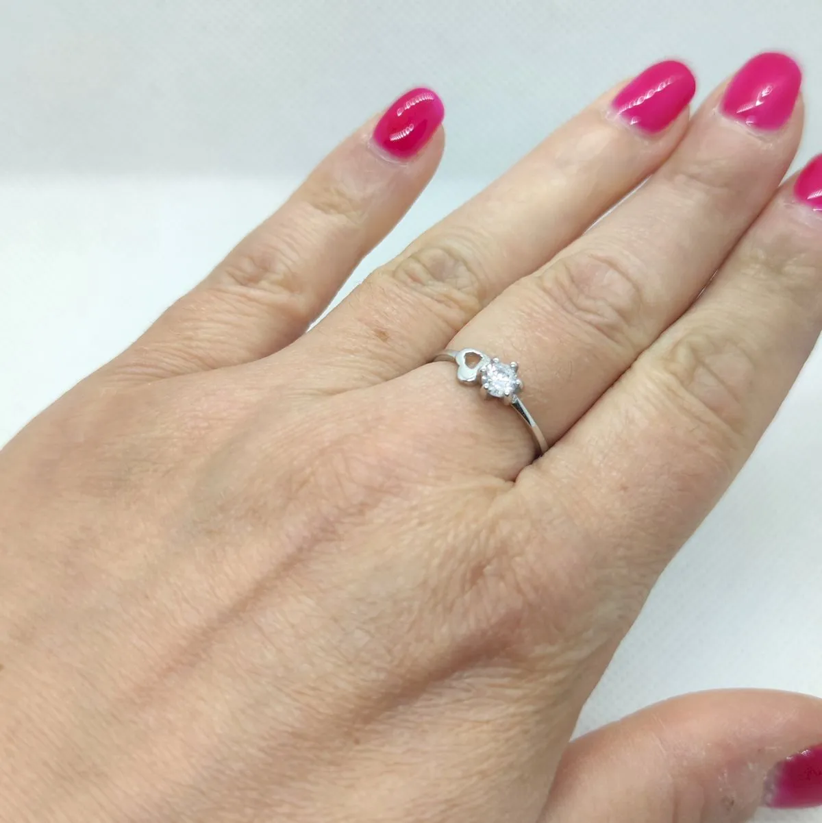Srebrny pierścionek z białą cyrkonią i serduszkiem