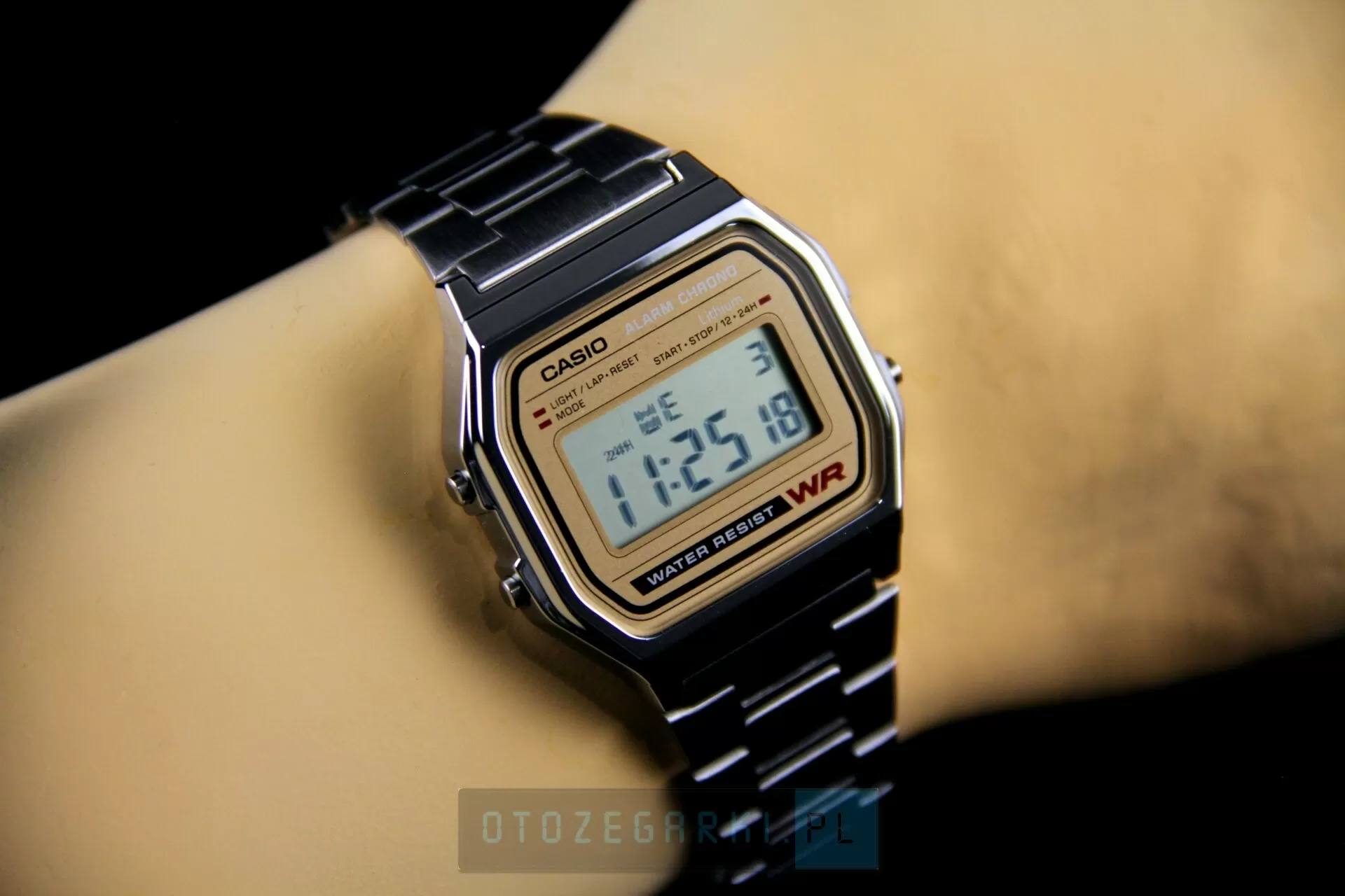Srebrny zegarek Casio Vintage A158WEA-9EF z wyświetlaczem
