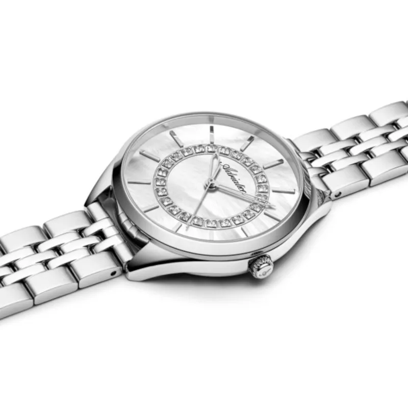 Srebrny zegarek damski Adriatica A3817.511FQ z masą perłową i kryształami