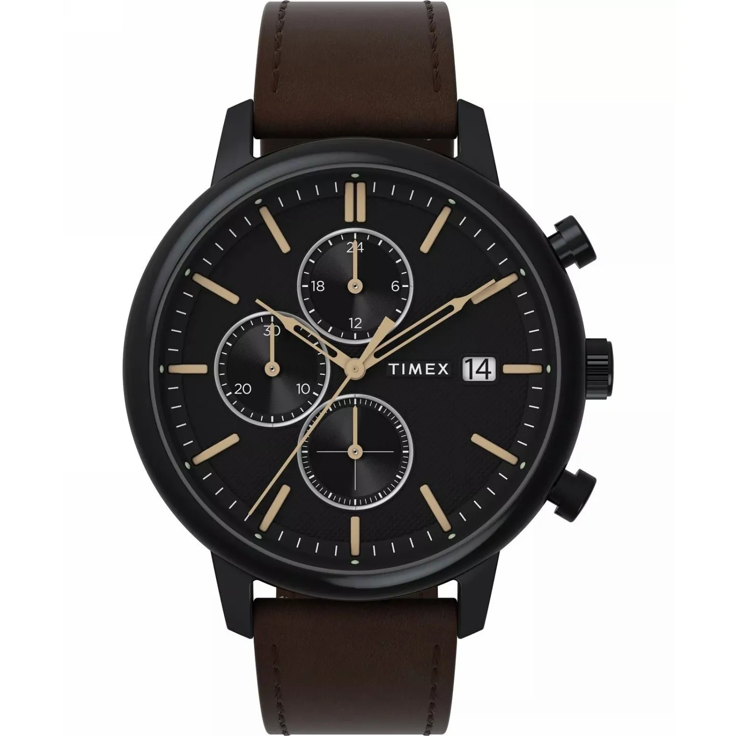 Zegarek męski Timex TW2W13200 z kolekcji Trend Chicago Chronograph to harmonijne połączenie klasycznego stylu z nowoczesną funkcjonalnością. Jego czarna koperta wykonana z mosiądzu przyciąga wzrok minimalistycznym, a jednocześnie wyrazistym designem. Czarna, giloszowana tarcza z precyzyjnie zaprojektowanymi subtarczami i datownikiem prezentuje się elegancko i czytelnie - idealnie dopełniając styl każdego nowoczesnego mężczyzny. Model ten to doskonały wybór dla tych, którzy cenią zarówno wygląd, jak i funkcjonalność.