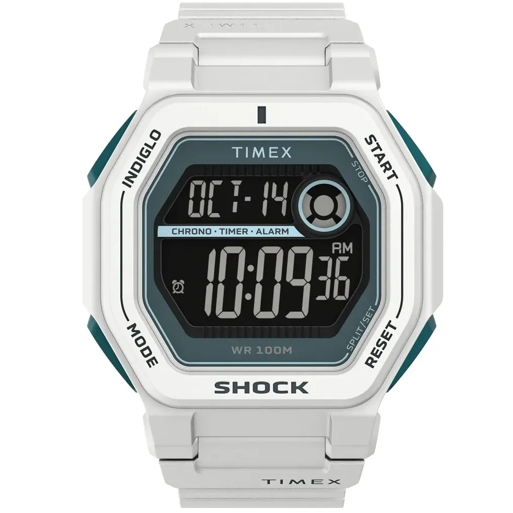 Timex Command Encounter TW2V63600 to zaawansowany model cyfrowy, wyposażony w podświetlenie INDIGLO®, odporność na wstrząsy i klasę wodoszczelności do 100 metrów, to nie tylko narzędzie do pomiaru czasu - to sojusznik w każdej przygodzie. Zegarek łączy nowoczesny, surowy wygląd z funkcjami niezbędnymi na co dzień: alarmem, stoperem, timerem i datownikiem. Wyróżnia się także wyjątkową konstrukcją ośmiokątnej koperty i solidnym paskiem z żywicy, co zapewnia trwałość i wygodę w każdych warunkach. Jeśli szukasz zegarka, który dotrzyma Ci kroku wszędzie tam, gdzie zaczyna się prawdziwa akcja - Timex TW2V63600 jest gotowy na każde wyzwanie.