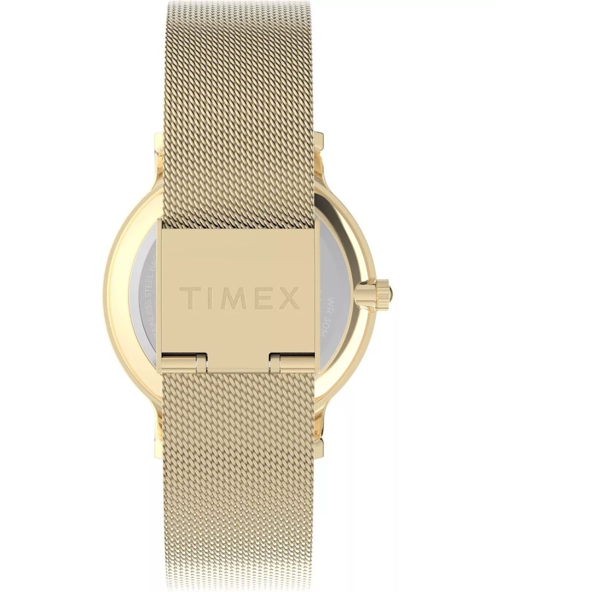 Timex to funkcjonalny zegarek, który jest nie tylko modnym dodatkiem, ale też praktycznym narzędziem, które ułatwi ci codzienne życie. Całość opiera się na typowo damskiej kolorystyce, z czytelną tarczą, co prezentuje się bardzo stylowo. Koperta została wykonana z metalu, jest trwała i stosunkowo lekka. Zegarek TW2Y10300 posiada siateczkową bransoletkę. Jak wszystkie zegarki Timex model ten będzie niezastąpionym dodatkiem w każdej sytuacji, gdyż precyzyjnie wskaże czas, mierzony dzięki swojemu kwarcowemu mechanizmowi. Czas wskazywany jest przez wskazówki. Zegarek Timex TW2Y10200 posiada tarcze, która jest czytelna, z indeksami. Wodoszczelność tego czasomierza oznakowana jest na 3ATM, co chroni przed zachlapaniami codziennego użytkowania.