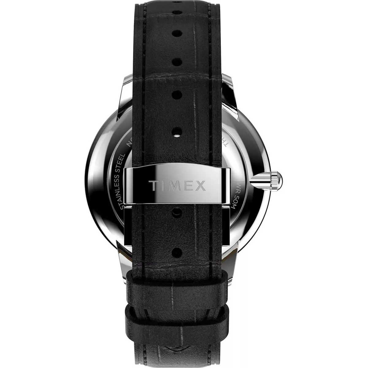 Timex jest funkcjonalnym zegarkiem z mineralnym szkiełkiem, o klasycznej kolorystyce. Uzupełnieniem okrągłej koperty jest skórzany pasek. Sercem zegarka jest precyzyjny mechanizm kwarcowy, zasilany za pomocą baterii elektrycznej.