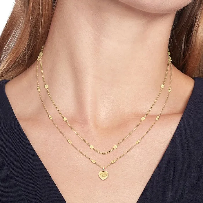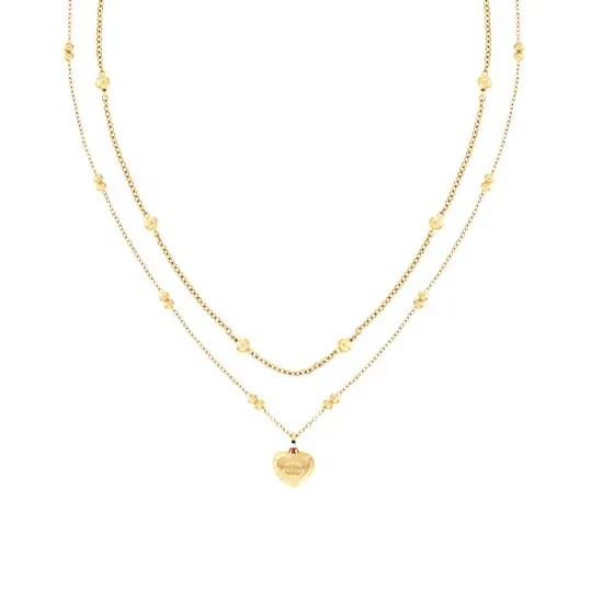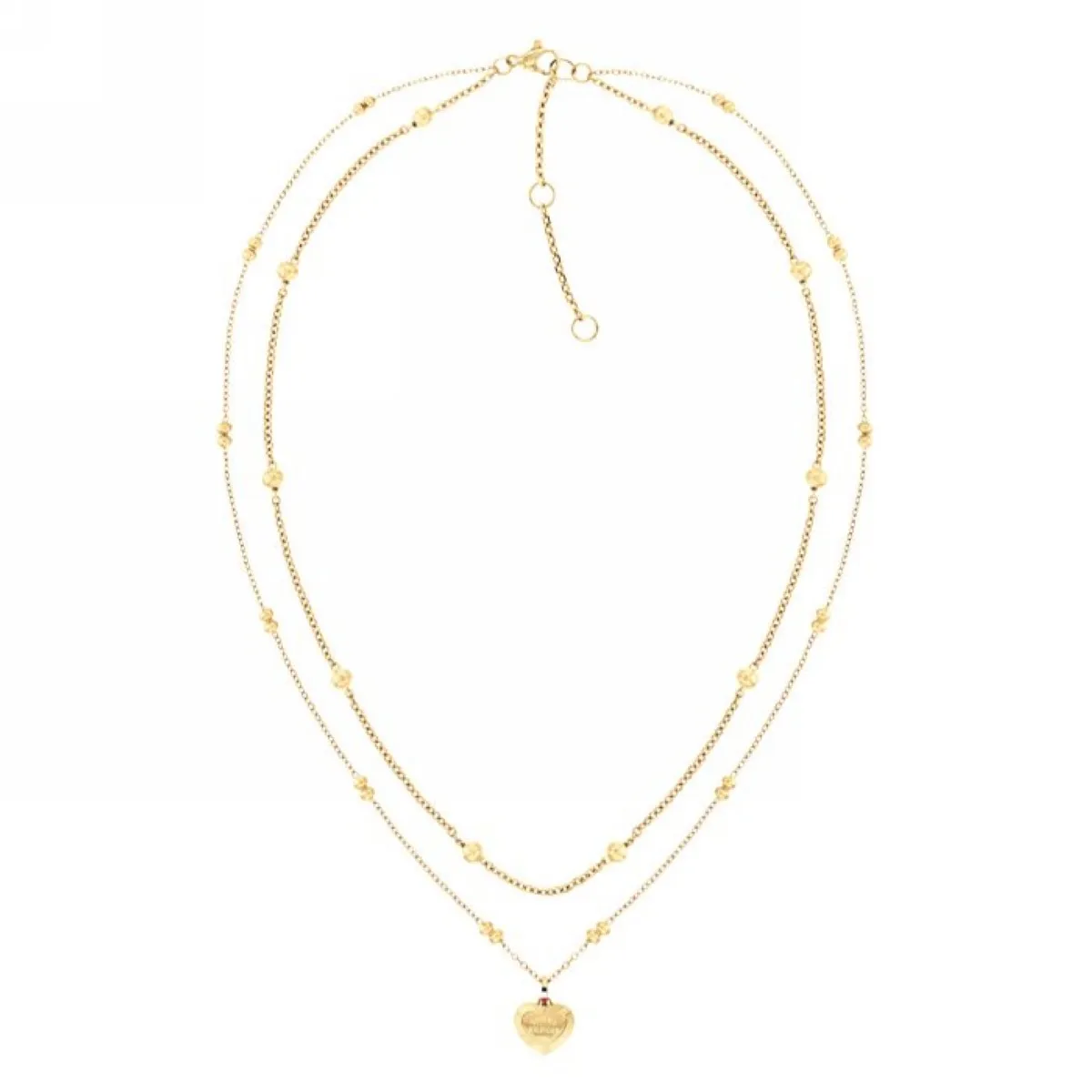 Naszyjnik Tommy Hilfiger 2781010 to złoty model z podwójnym łańcuszkiem i zawieszką w kształcie serca. Wykonany ze stali szlachetnej pokrytej złotem, z regulacją długości.