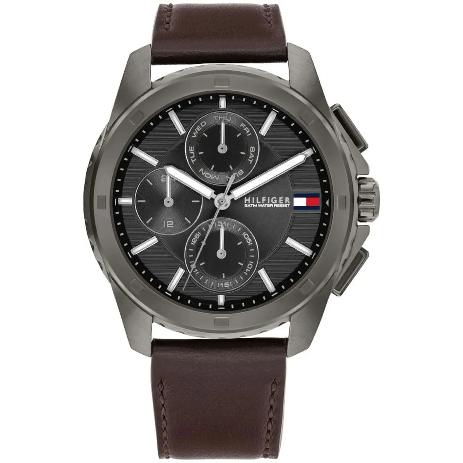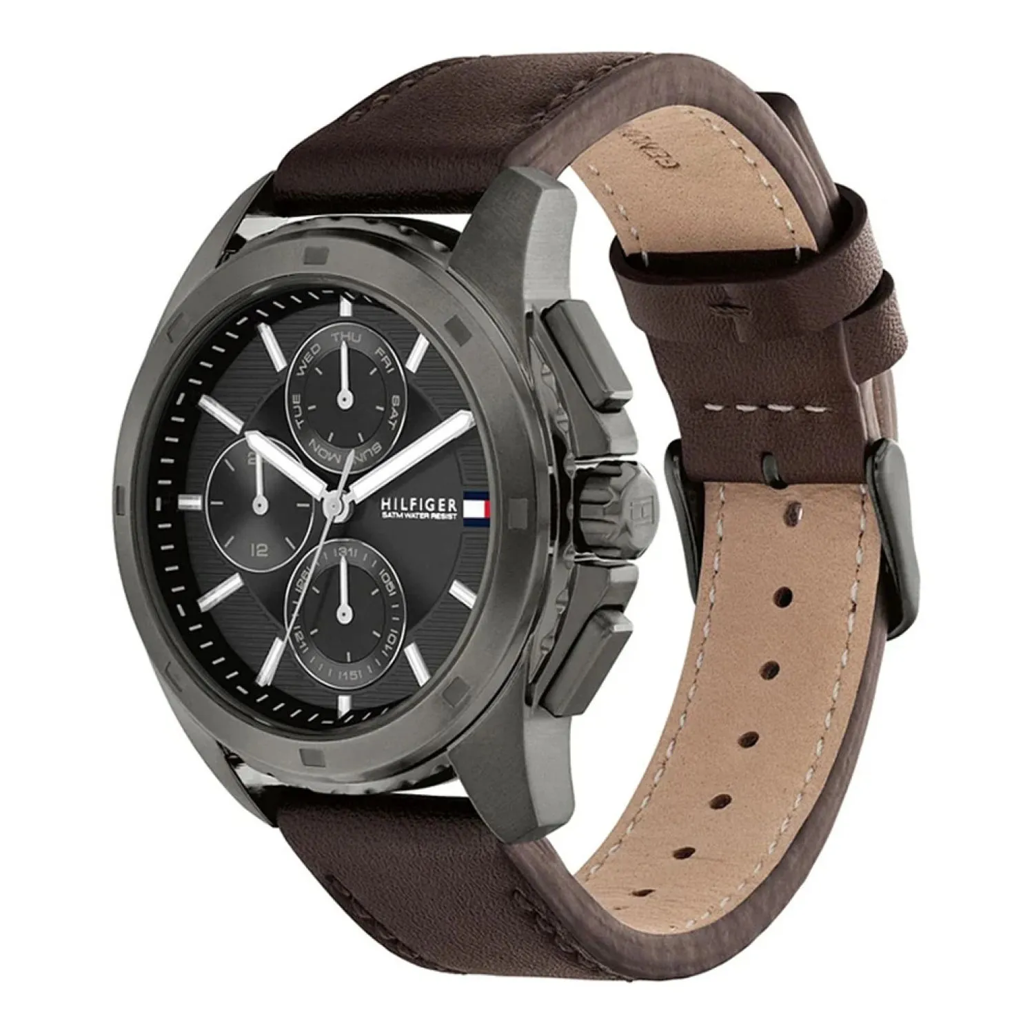 Zegarek Tommy Hilfiger Walker 1710623 z kwarcowym mechanizmem, w szarej obudowie, posiada czarną tarczę z multidatownikiem, to połączenie klasycznego designu i nowoczesnych funkcji. posiada 5ATM wodoszczelności.