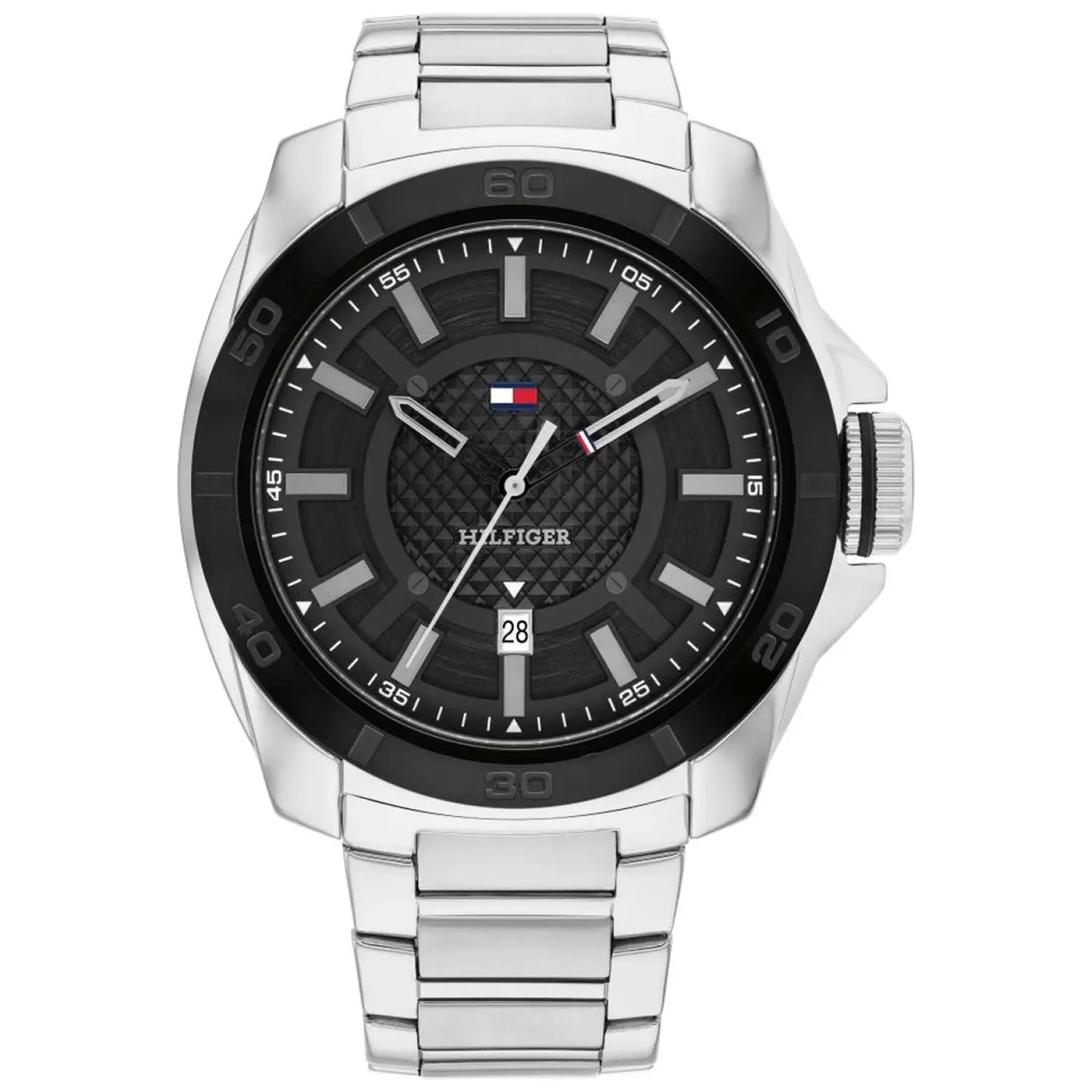Zegarek Tommy Hilfiger Windsurf 1792138 z kwarcowym mechanizmem, w srebrnej obudowie, posiada czarną tarczę z datownikiem, to połączenie klasycznego designu i nowoczesnych funkcji. Dodatkowo funkcja 5ATM wodoszczelności.