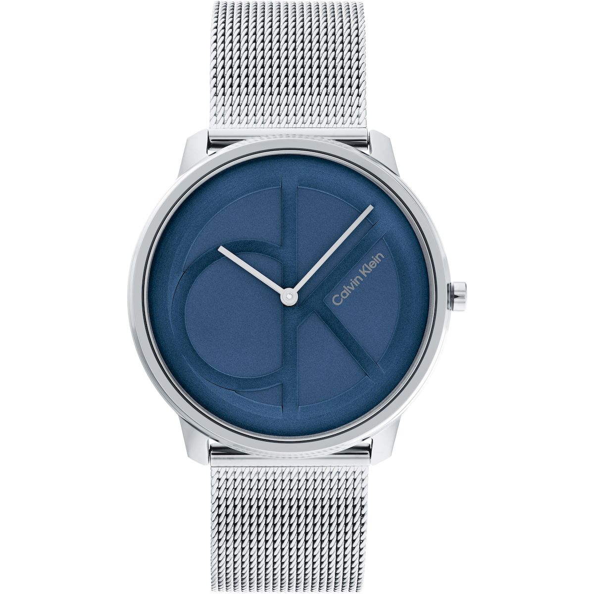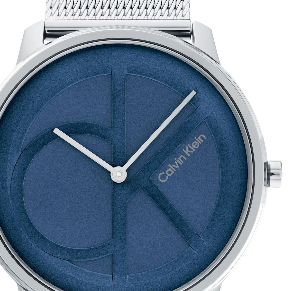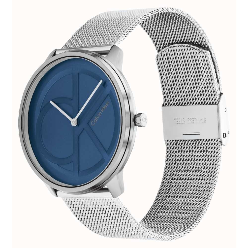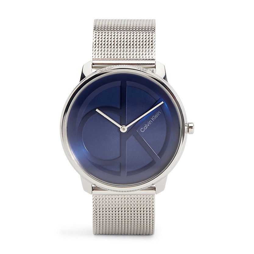 Zegarek Calvin Klein z kolekcji 25200031 Iconic Mesh z obudową kolorze srebrnym, granatową tarczą i srebrną bransoletką typu mesh: