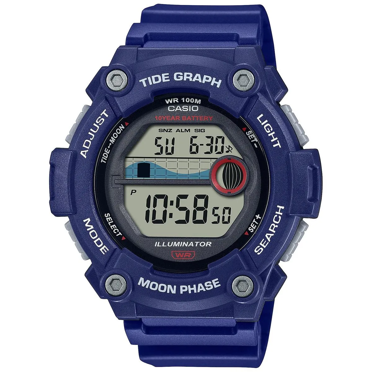 Sportowy zegarek Casio z fazami księżyca