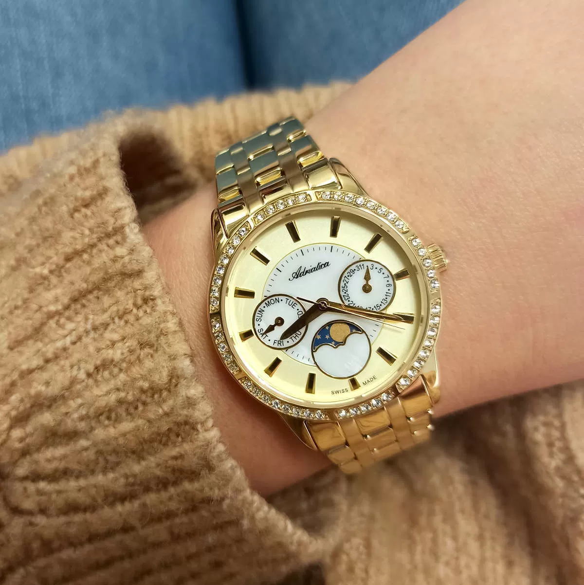 Zegarki damskie Adriatica oraz modele męskie mogą być też wyposażone w podwójny czas, co jest idealnym rozwiązaniem dla osób pracujących w innej strefie czasowej, a także w fazy księżyca, które mogą wpływać na komfort snu.