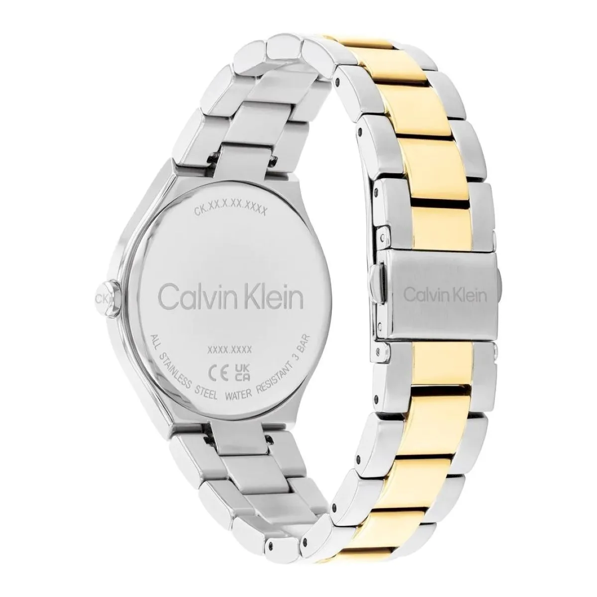 Zegarek CK 25200366 to minimalistyczny design i ponadczasowa elegancja, prezentują się nieskazitelnie. Tarczę zakrywa mineralne szkiełko, będące optymalnym rozwiązaniem w zegarkach, gdyż jest średnio odporne na zarysowania oraz stosunkowo elastyczne, co dobrze chroni przed pęknięciem. Całość zamknięto w okrągłej obudowie, wykonanej ze stali szlachetnej w złoto-srebrnym kolorze, do której dopasowano wygodną bransoletkę. Model działa na mechanizmie kwarcowym, co oznacza, że jest zasilany przez baterię. Jeśli chodzi o wodoszczelność, jest ona w tym czasomierzu zapewniona na poziomie 3 ATM, więc bardzo dobrze sprawdzi się w codziennym użytkowaniu.