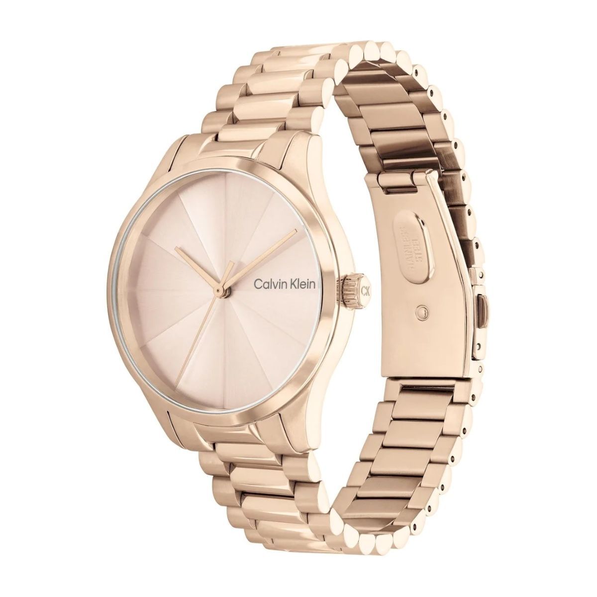 Zegarek damski Calvin Klein z kolekcji 25200231 Burst z obudową kolorze różowozłotym, różowozłotą tarczą i różowozłotą bransoletką klasyczna: