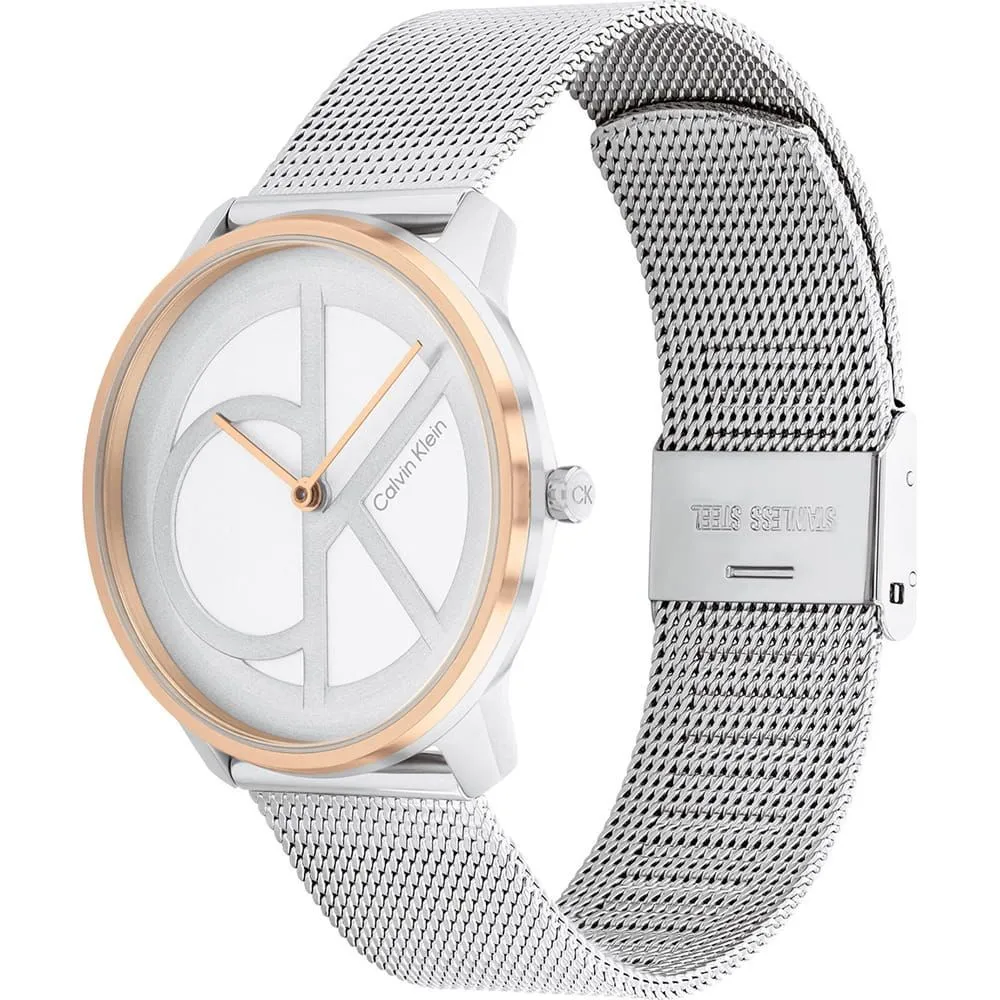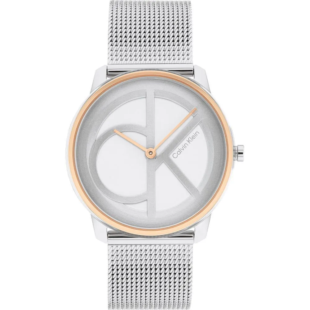 Zegarek Calvin Klein z kolekcji 25200033 Iconic Mesh z obudową kolorze srebrnym, srebrną tarczą i srebrną bransoletką typu mesh: