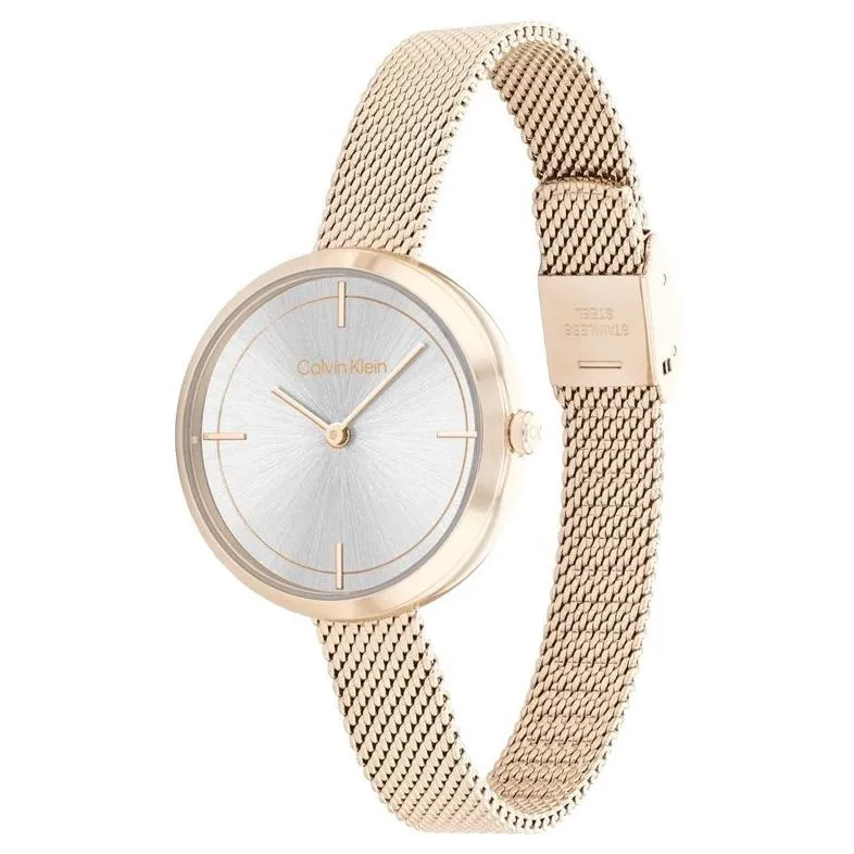 Zegarek CK 25200187 to minimalistyczny design i ponadczasowa elegancja, prezentują się nieskazitelnie. Tarczę zakrywa mineralne szkiełko, będące optymalnym rozwiązaniem w zegarkach, gdyż jest średnio odporne na zarysowania oraz stosunkowo elastyczne, co dobrze chroni przed pęknięciem. Całość zamknięto w okrągłej obudowie, wykonanej ze stali szlachetnej, do której dopasowano wygodną bransoletkę. Model działa na mechanizmie kwarcowym, co oznacza, że jest zasilany przez baterię. Jeśli chodzi o wodoszczelność, jest ona w tym czasomierzu zapewniona na poziomie 3 ATM, więc bardzo dobrze sprawdzi się w codziennym użytkowaniu.